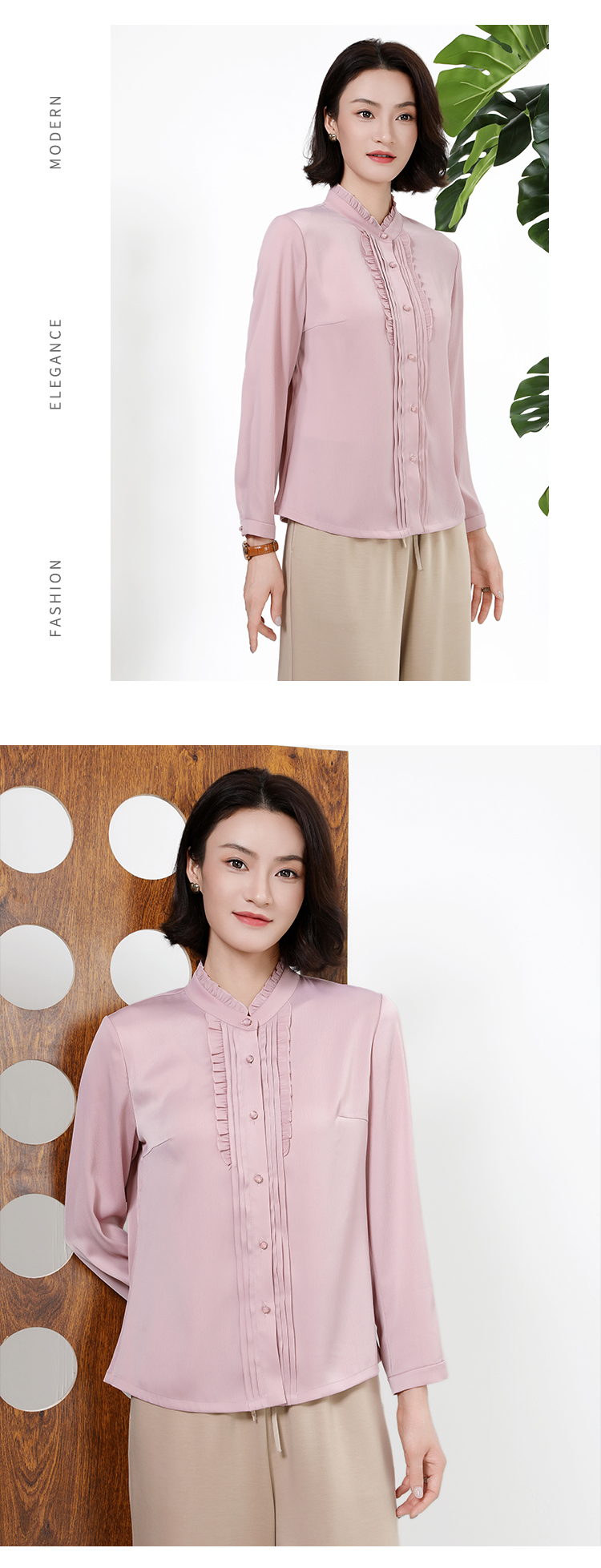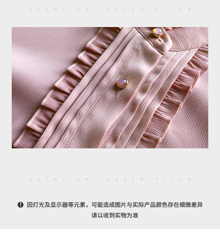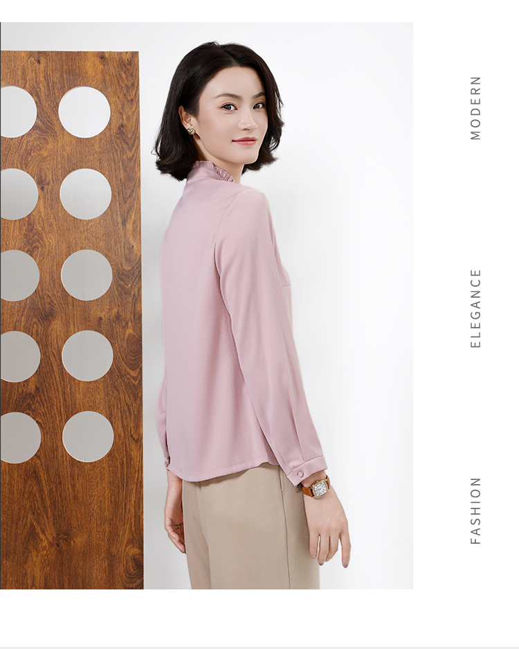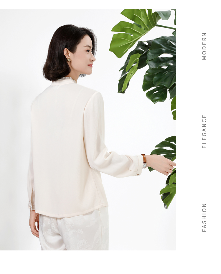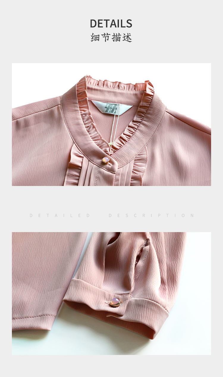 佐尔美秋上新百搭轻熟风立领褶皱法式木耳边门襟衬衣女M51CC08