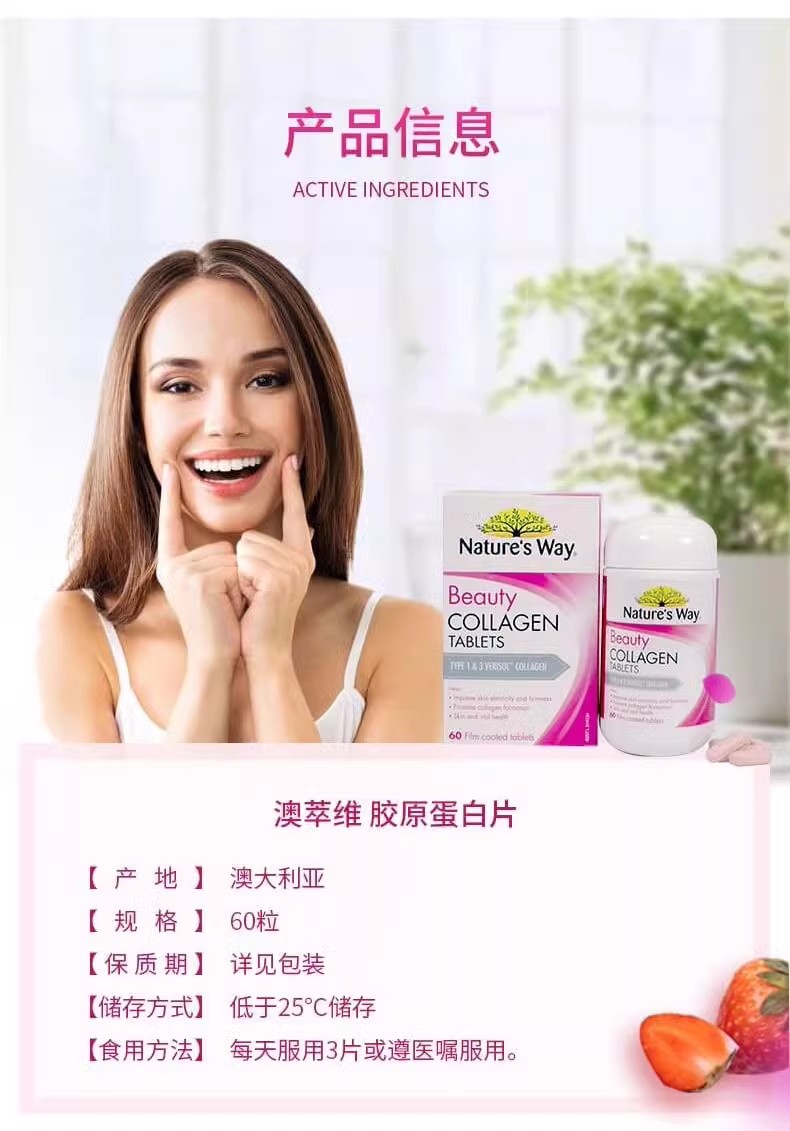 【跨境】Natures Way澳萃维胶原蛋白片60粒/胶原蛋白粉120g
