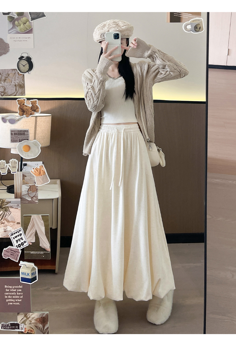 【YW】无忧购韩系花苞针织糯米半身裙中长款a字伞裙H-1623-1(截单后3-5天发货)