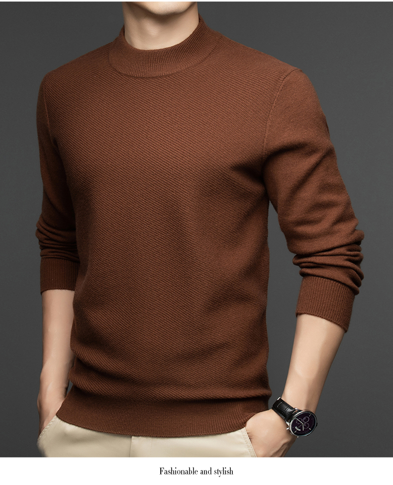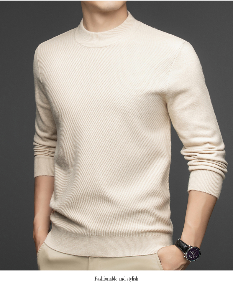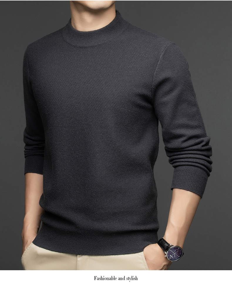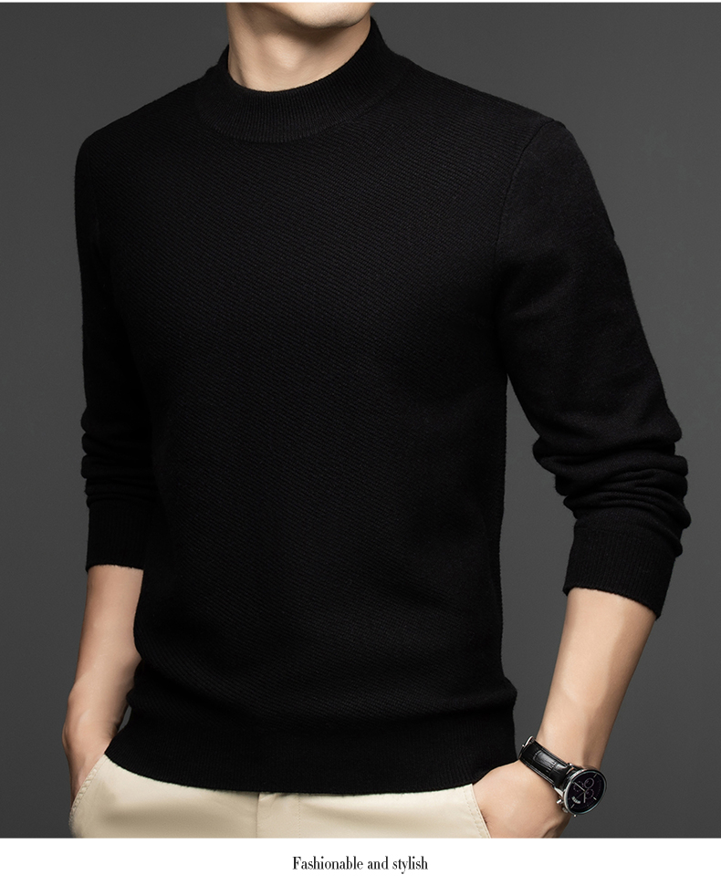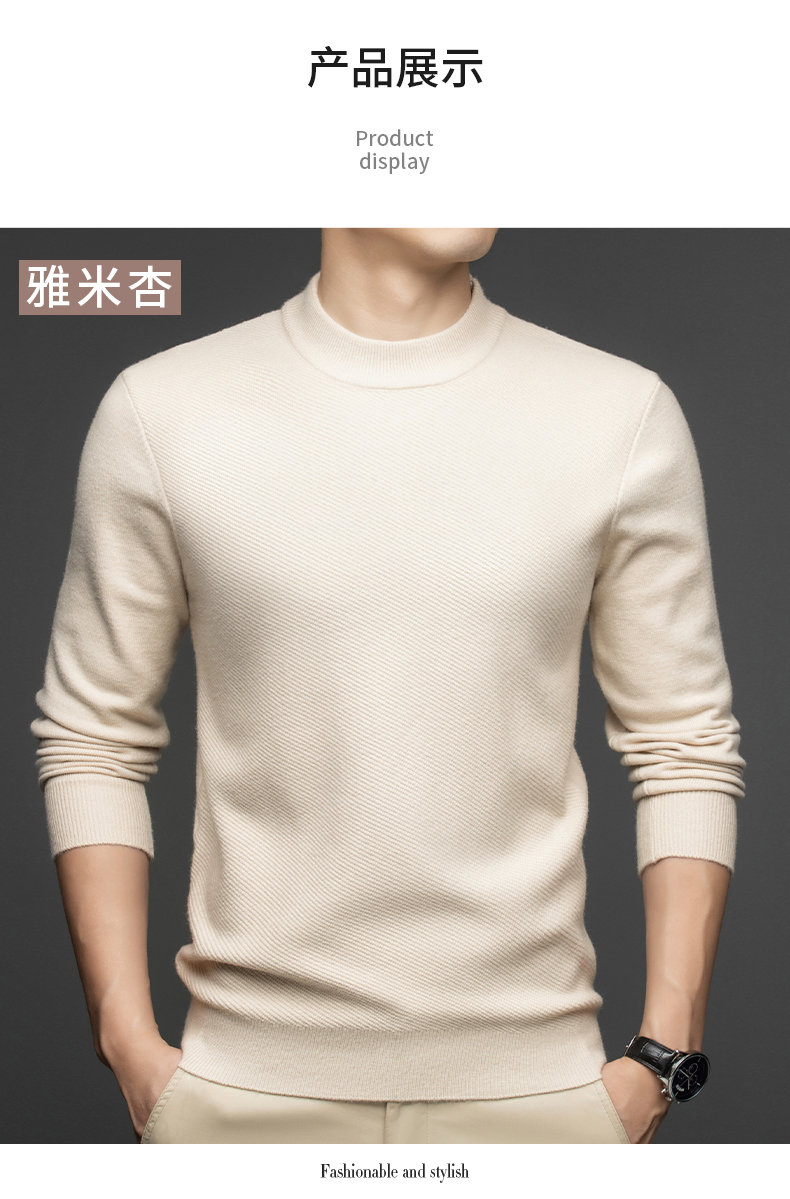 【含羊毛】圣得西男士罗纹半高领毛衫年冬季百搭加厚上衣
