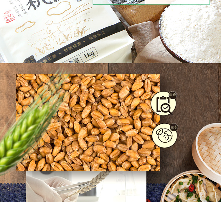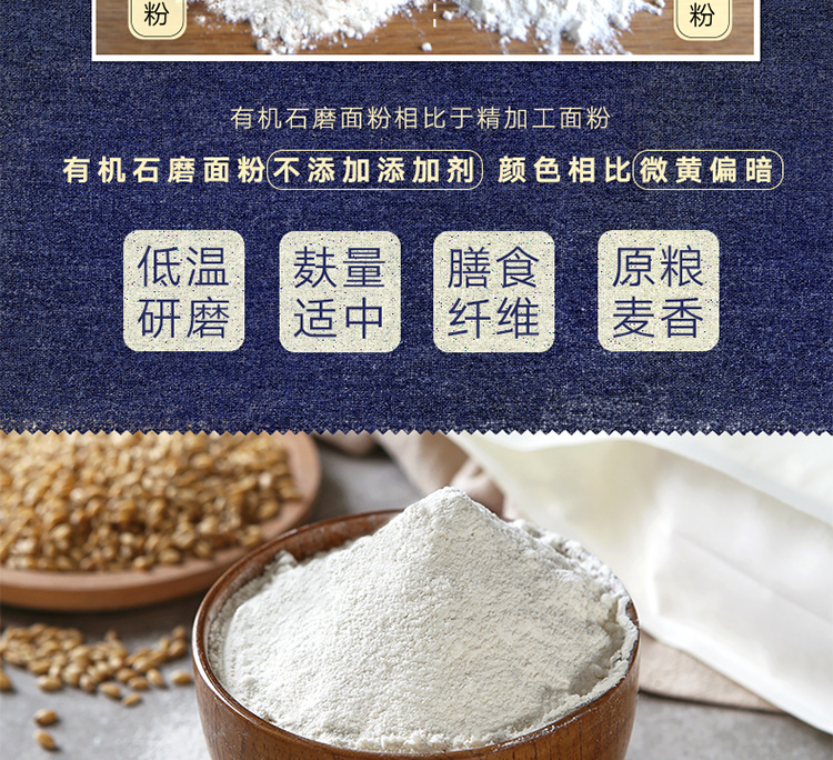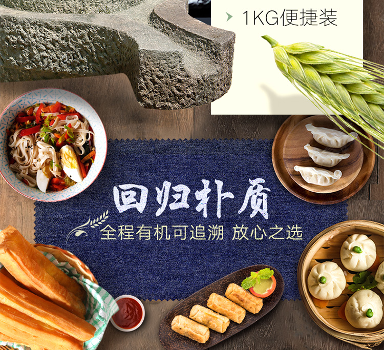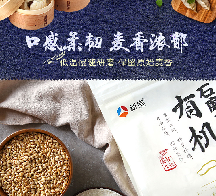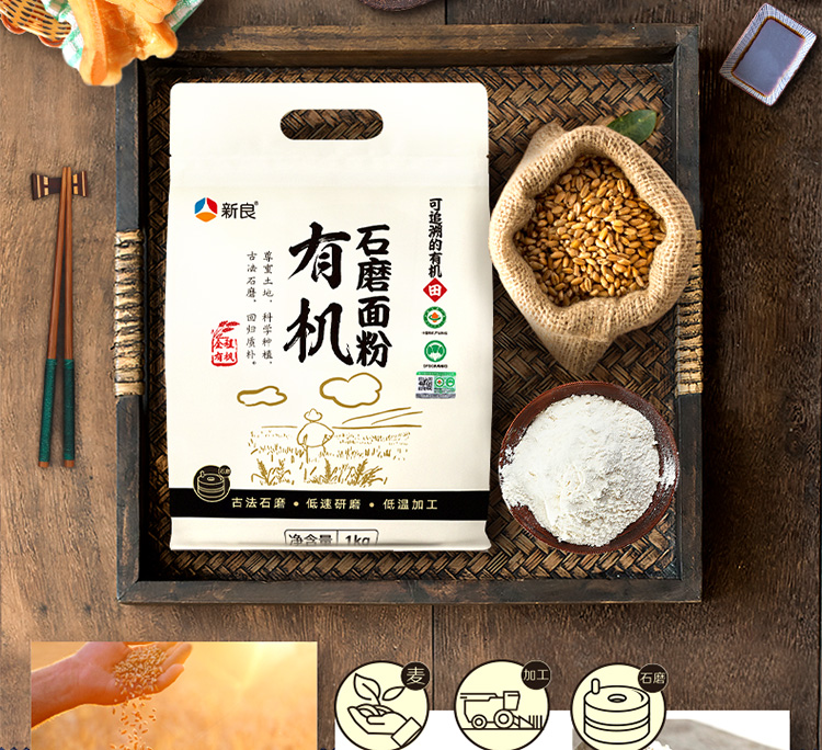 新良有机石磨面粉1kg 面粉2斤家用 中筋粉 馒头包子面条小麦粉