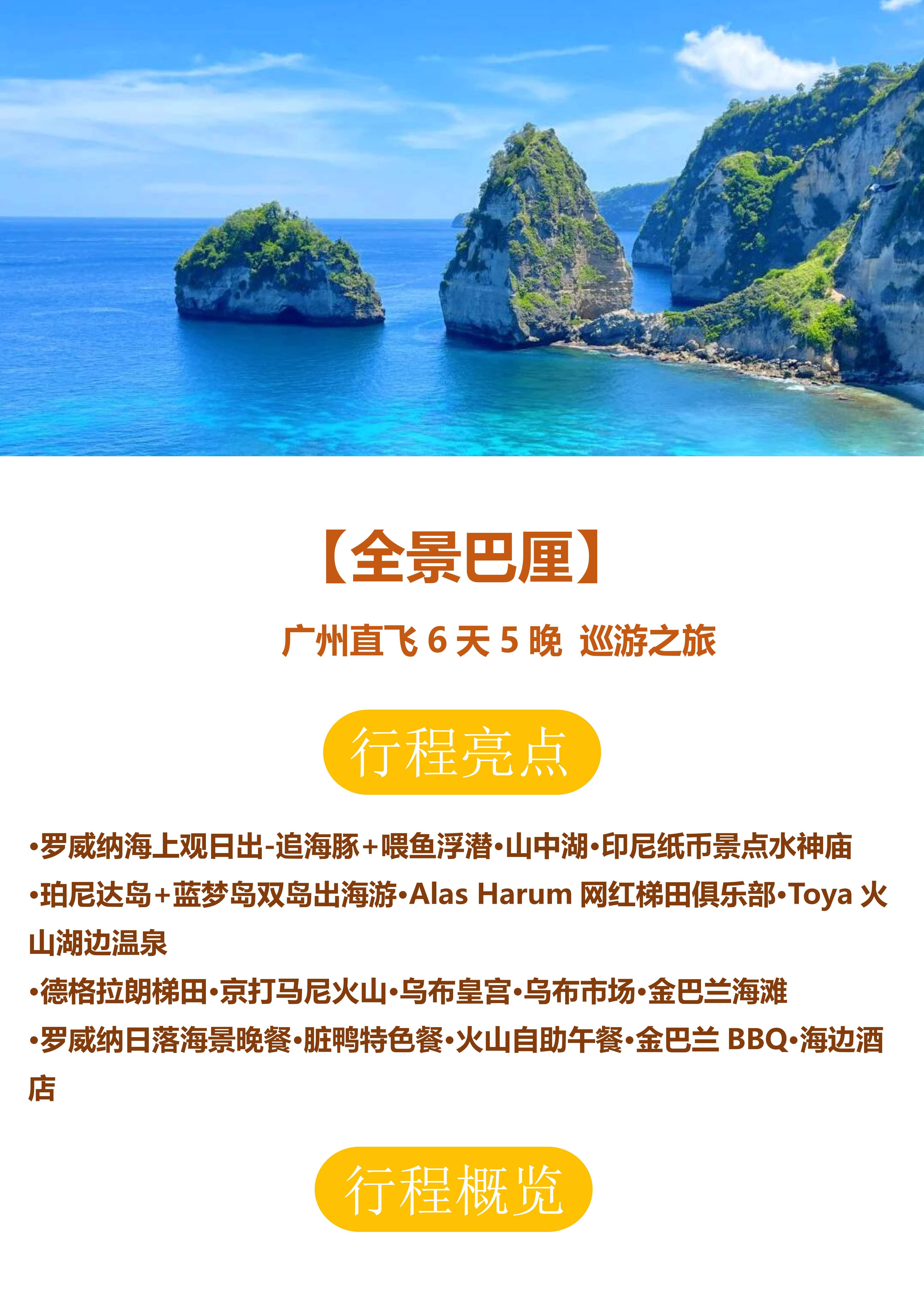 【全景巴厘】 广州直飞6天5晚 巡游之旅