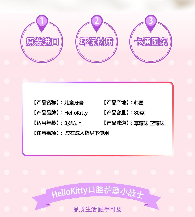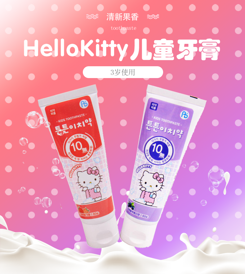 【中欧班列精选】韩国进口XDR KT猫儿童牙膏 草莓味、蓝莓味80g