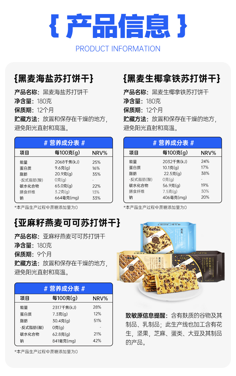 黑麦海盐/生椰拿铁/亚麻籽燕麦可可苏打饼干180g/袋(内含8小包,实际数量以克重为准)