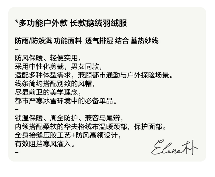 90鹅绒 简约户外款 防水透气 中长款羽绒服
