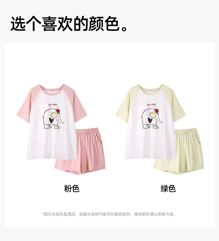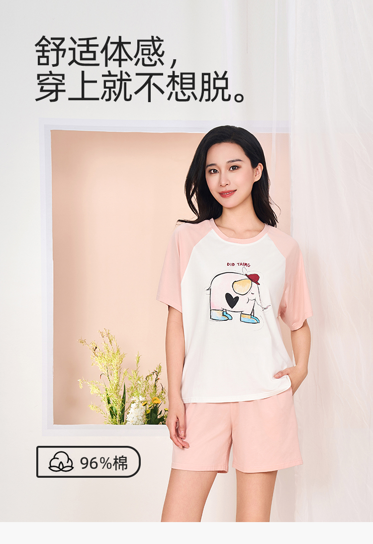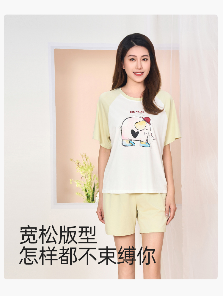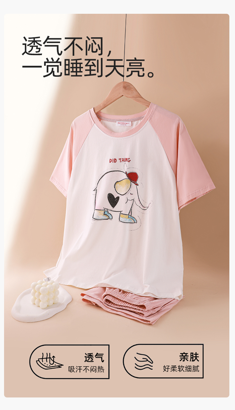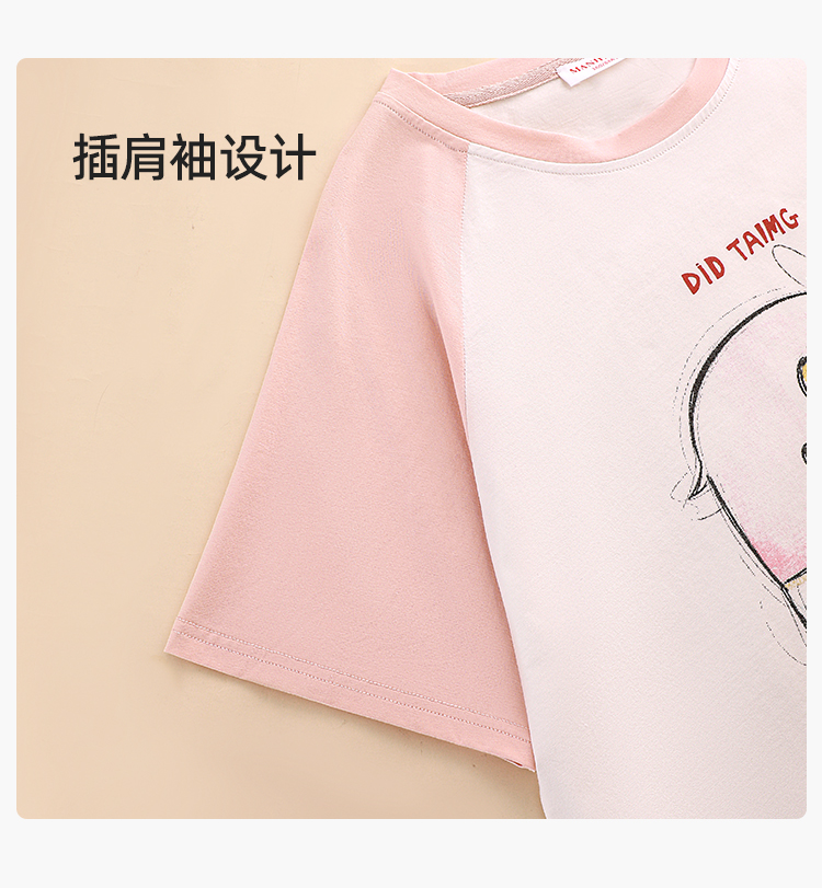 【商场同款】熳洁儿 96%棉透气圆领短袖短裤套装夏季卡通印花清新24203223