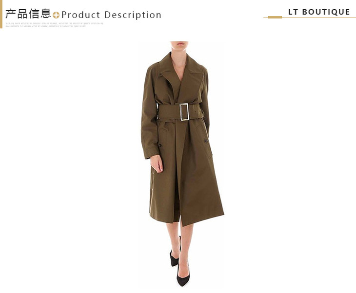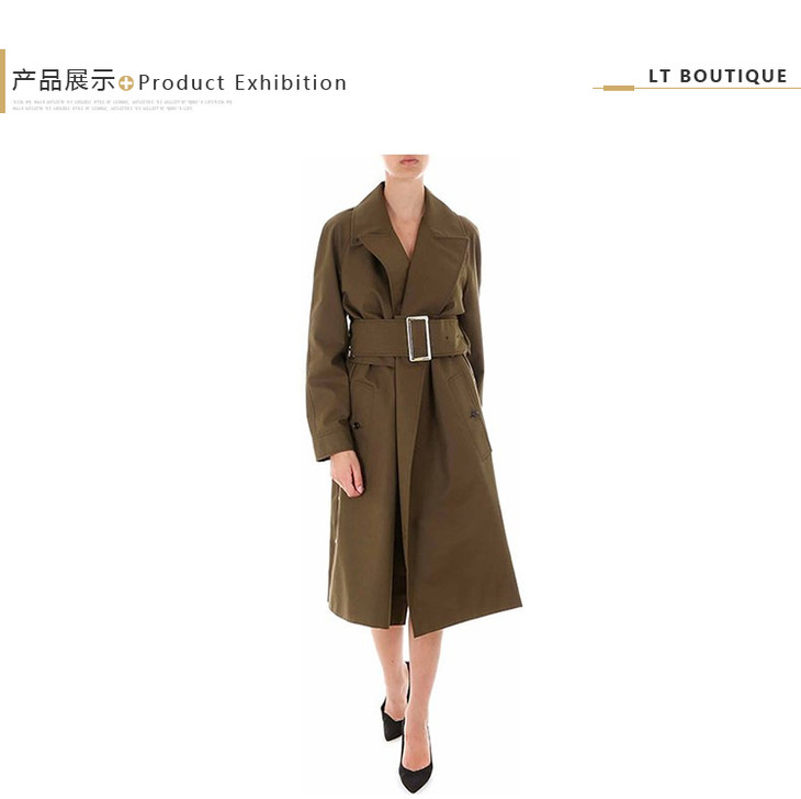 BURBERRY 巴宝莉 女士侧开衩棉质嘎巴甸长款束带风衣 军绿色 8014162 A1205