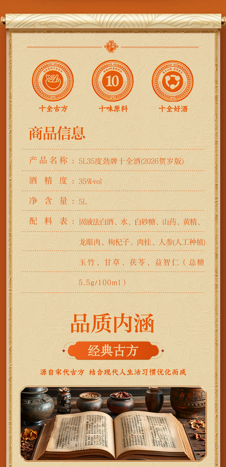 【2026新春贺岁版】35°劲牌十全酒5L