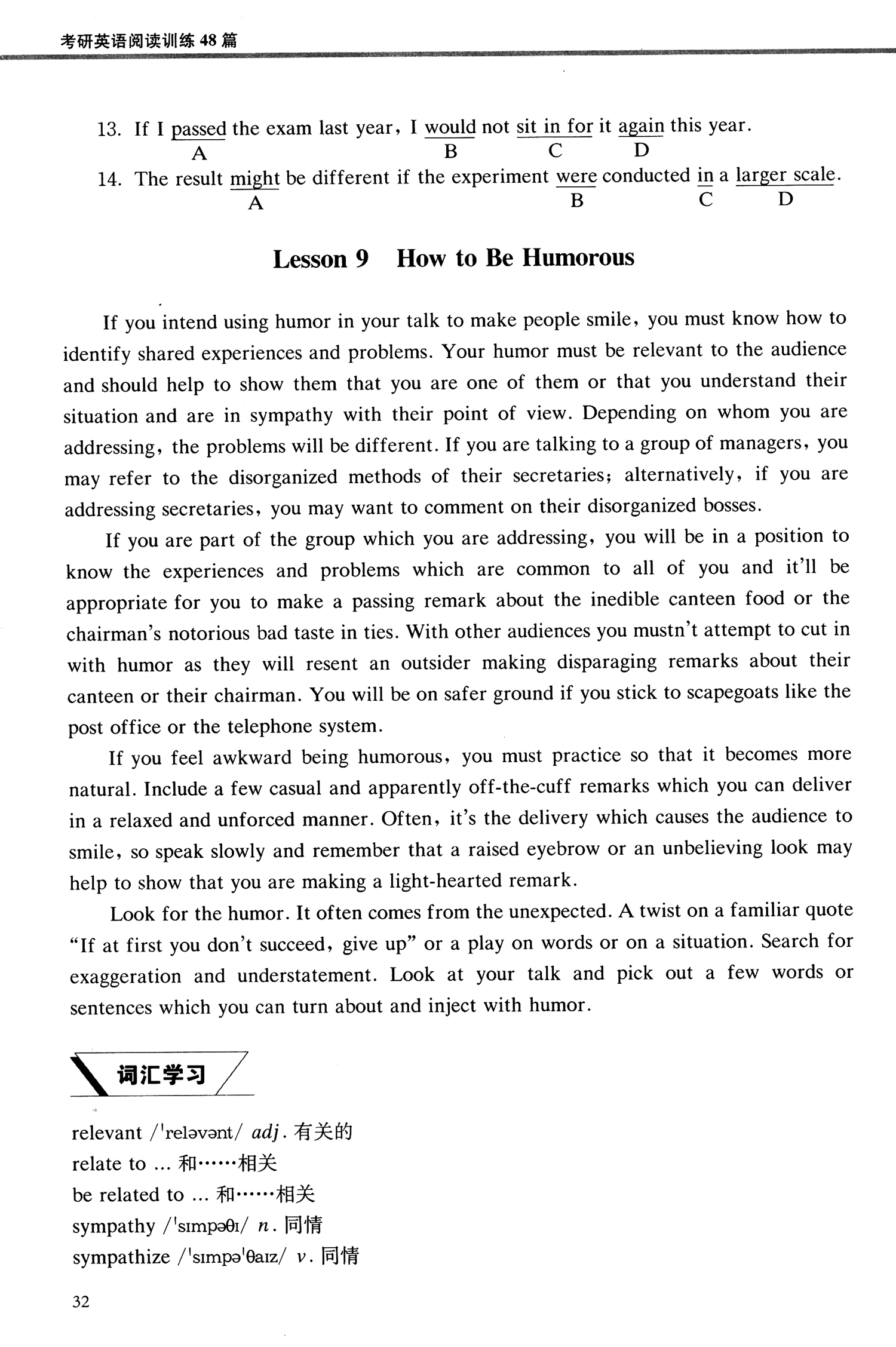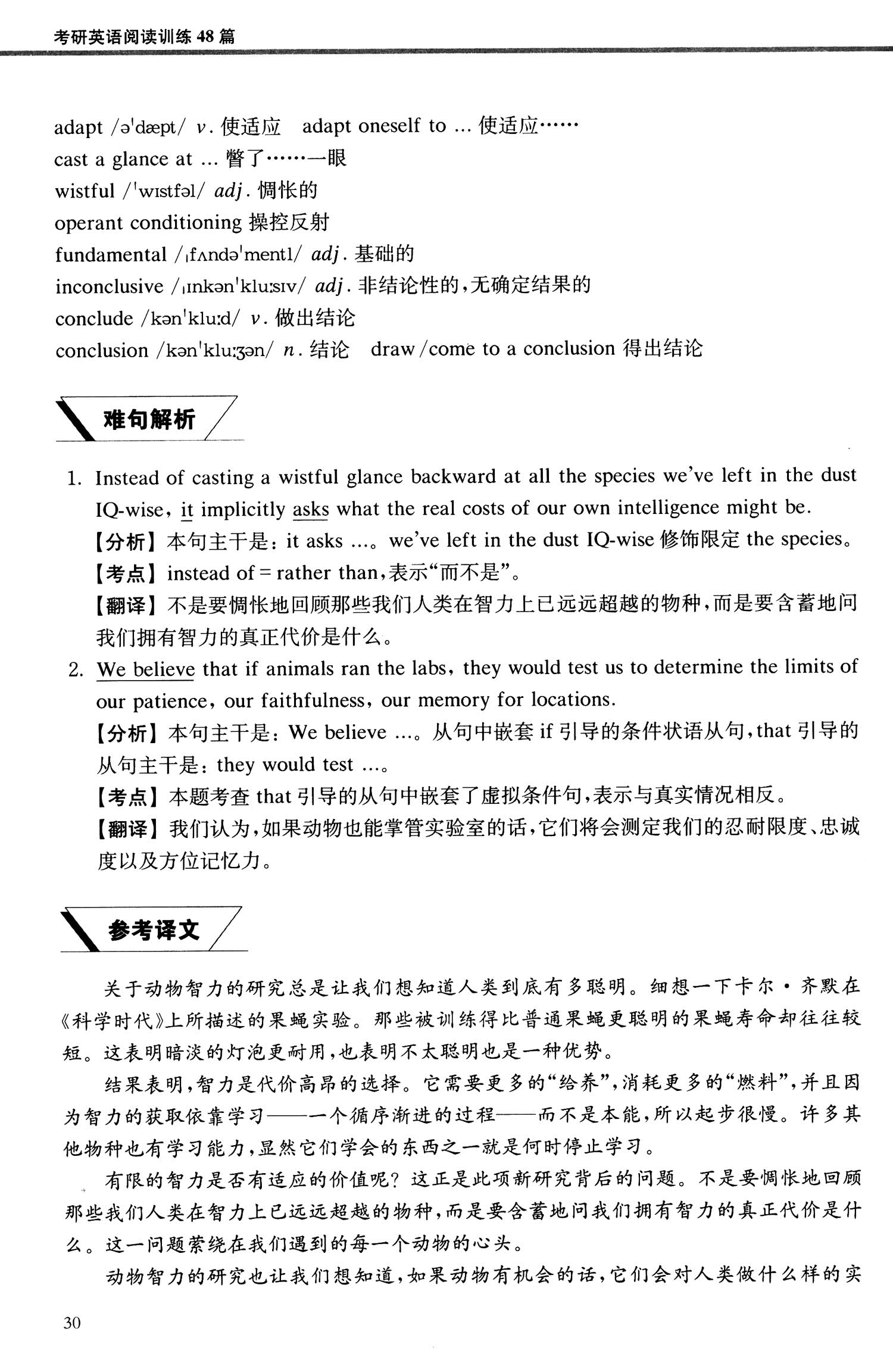 《考研英语阅读训练48篇(英语1英语2均适用)》夯实基础,适应考研文章难度,掌握分析文章的套路。