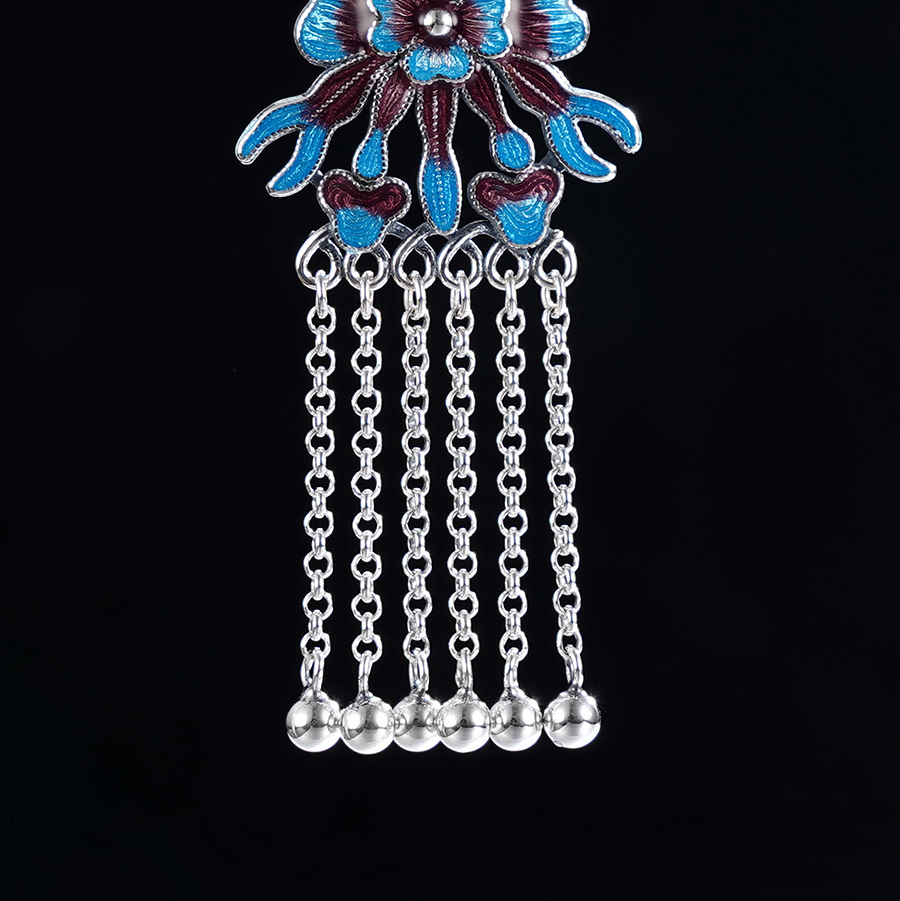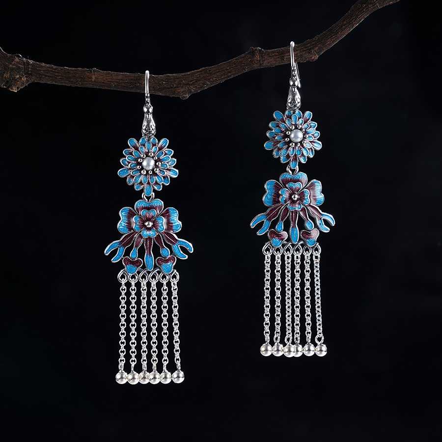 【寓意】:银花丝勾勒出花朵轮廓,珐琅彩点染,明丽嫣然。搭配垂坠流苏,灵动婉转,繁花相遇,妙不可言。