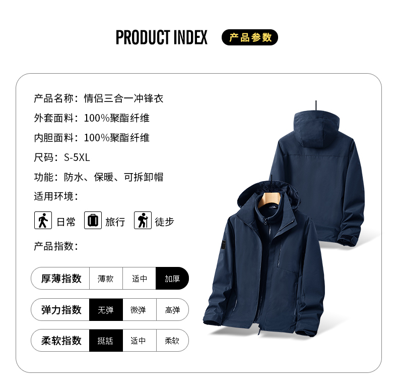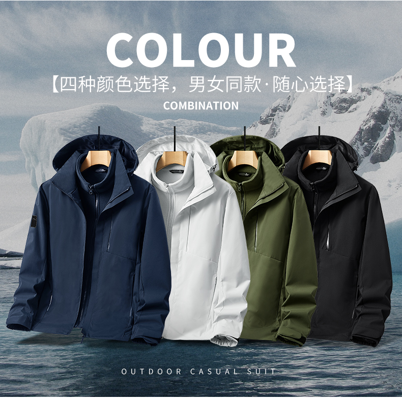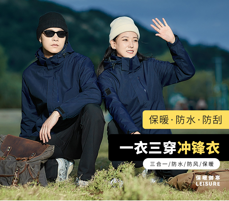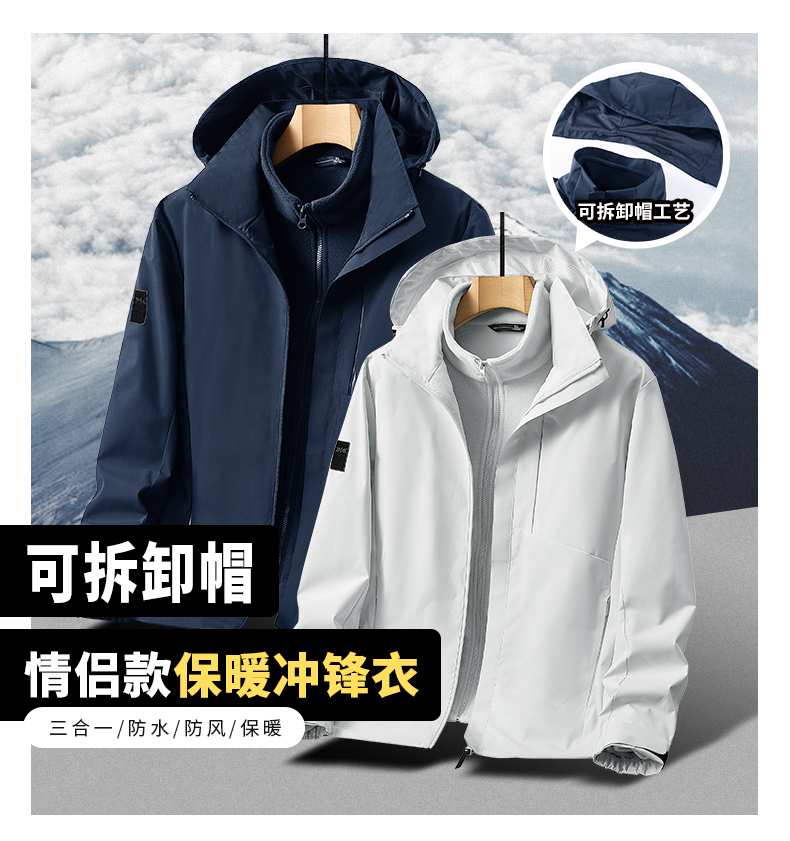 2025秋季新款 男女款抓绒内胆可拆卸情侣三合一户外冲锋衣防水保暖运动外套BS23031A-T
