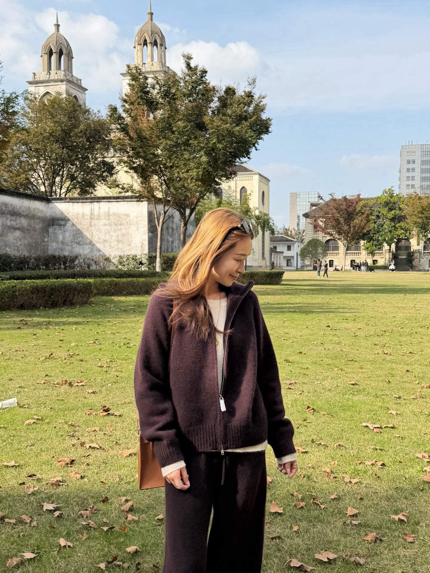 开衫克重 650g,厚实挺括,保暖性能拉满,