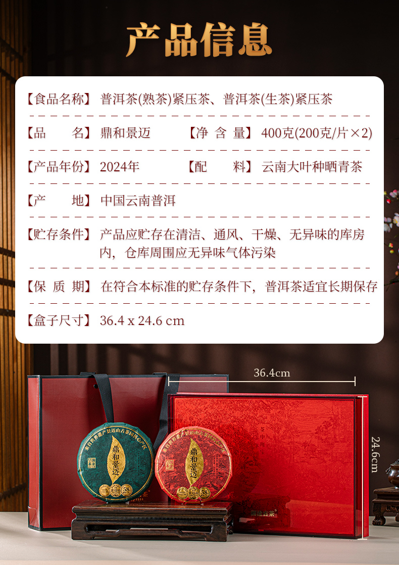 澜沧古茶2024年鼎和景迈 景迈山申遗一周年纪念饼云南名山古树普洱茶春茶生茶熟茶生熟礼盒400g(200g*2)