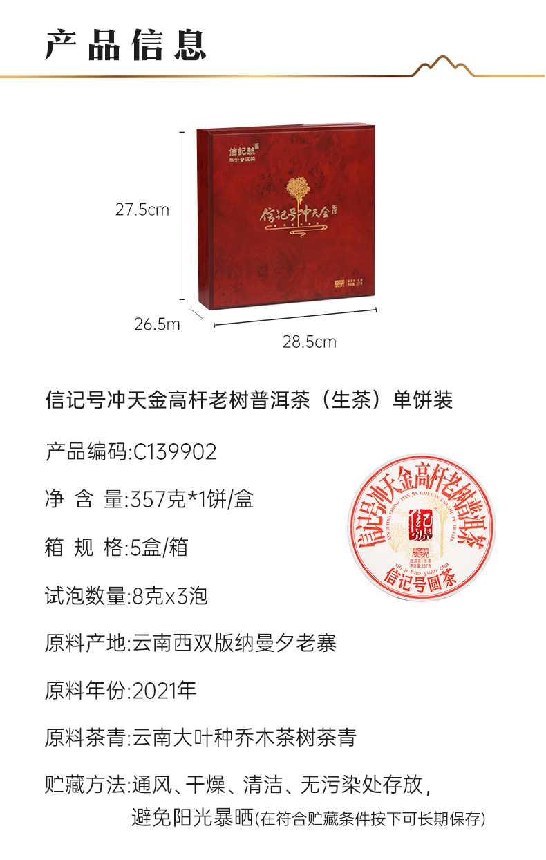 八马信记号|普洱生茶 信记号冲天金高杆老树普洱(357克) C139902