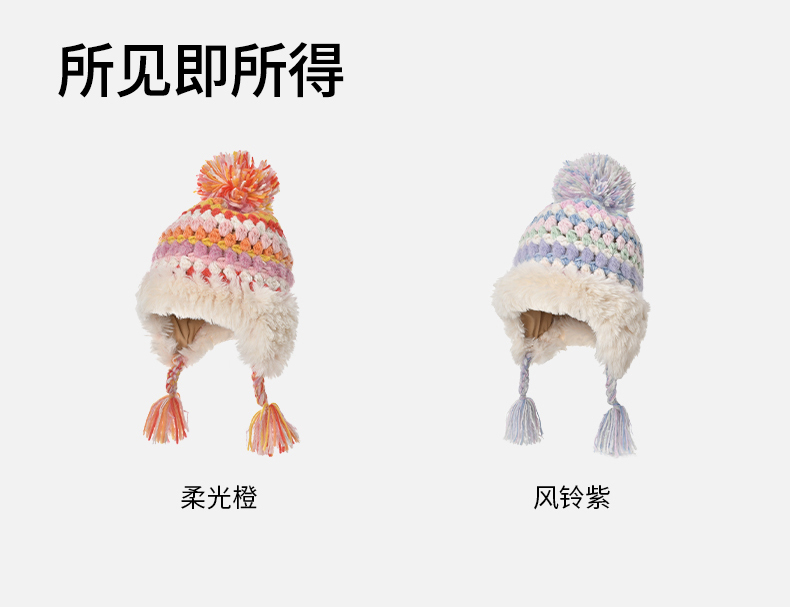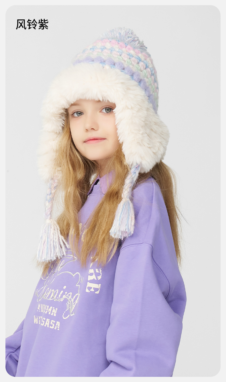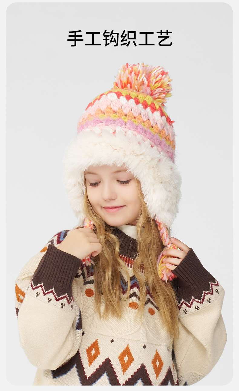 【云优选】卡蒙冬季儿童绵羊毛缤纷彩色撞色毛边大毛球针织帽KM-4467