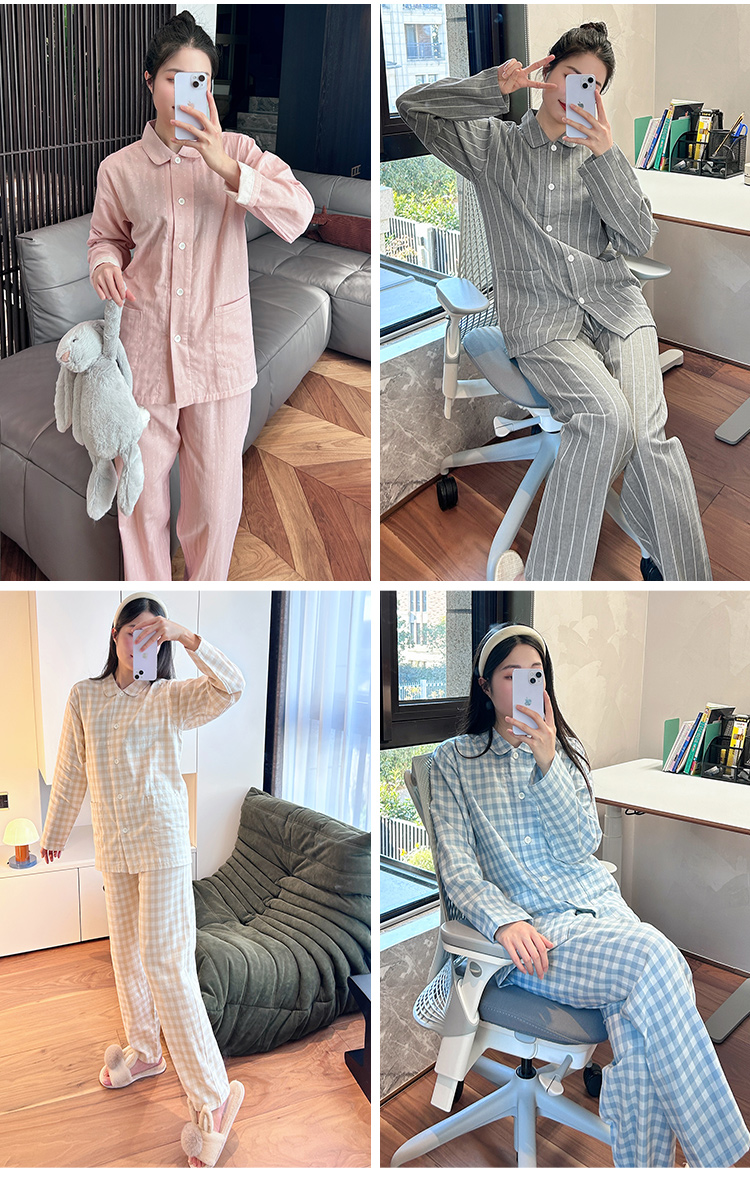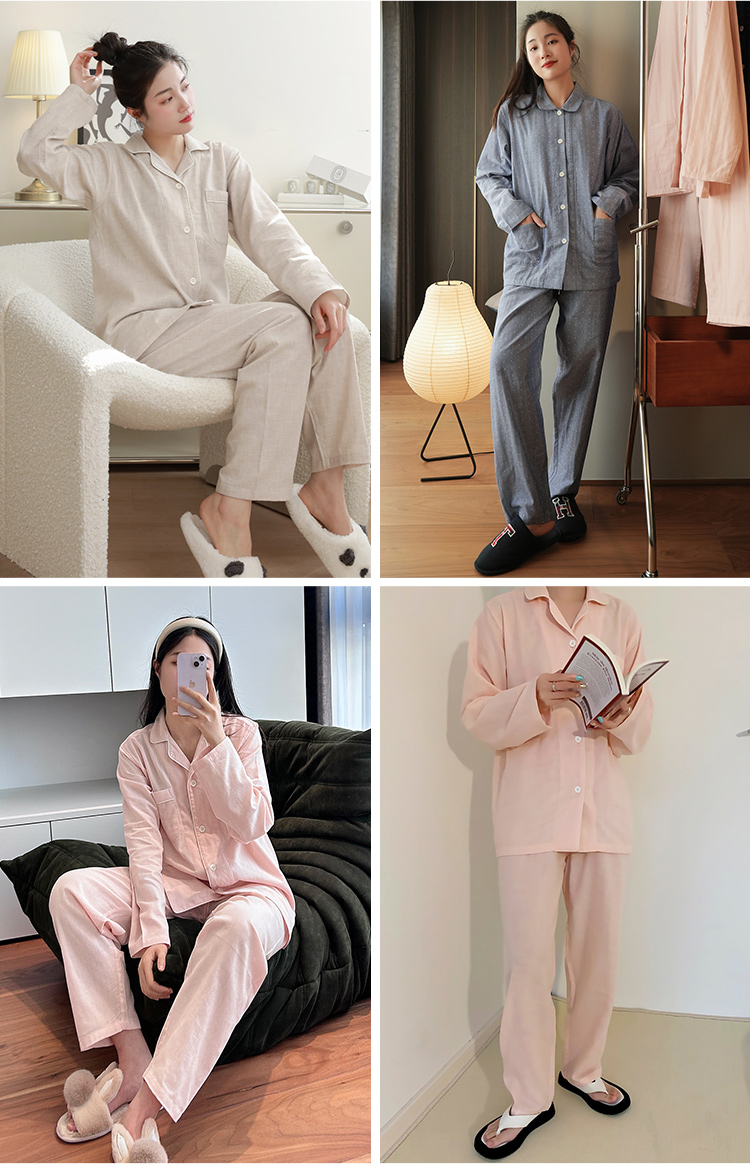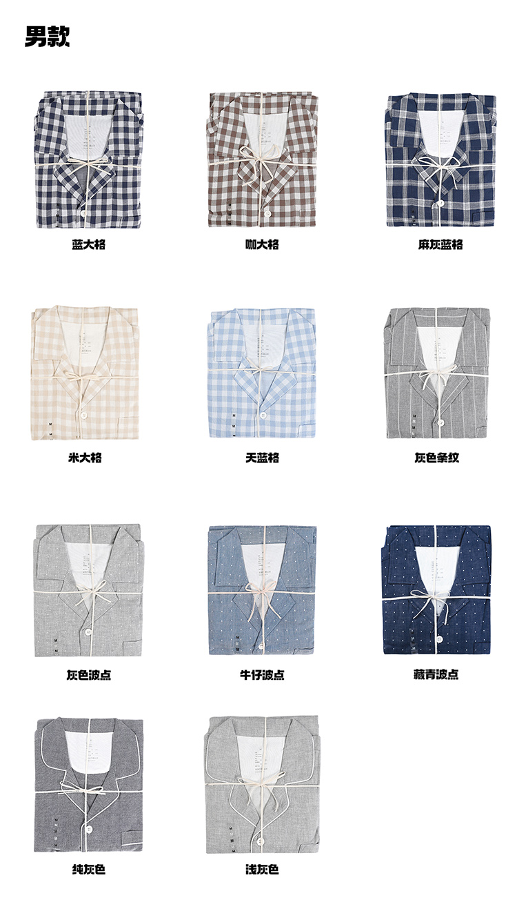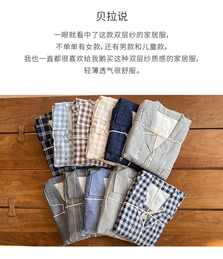 【爱侣宅家服】 双层纱家居服情侣款 纯棉材质 轻薄透气 花样款式 男女可选
