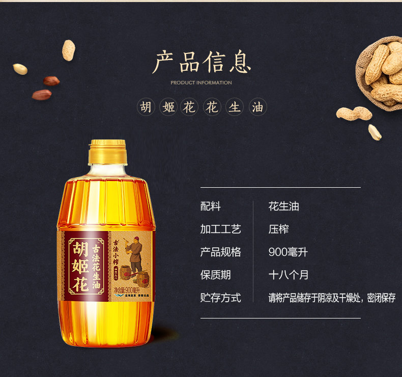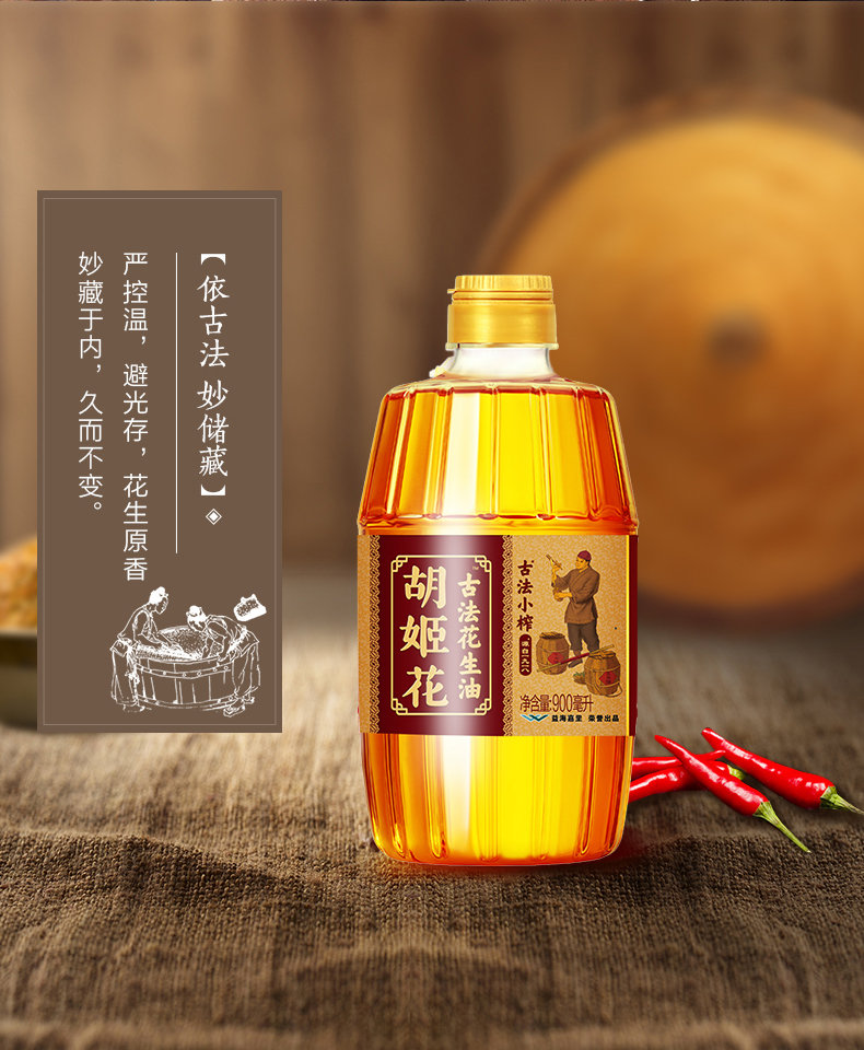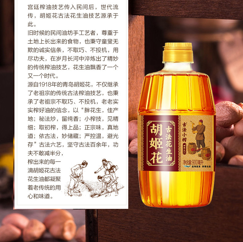 胡姬花古法小榨花生油900ML*5-YS
