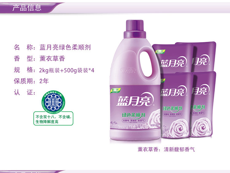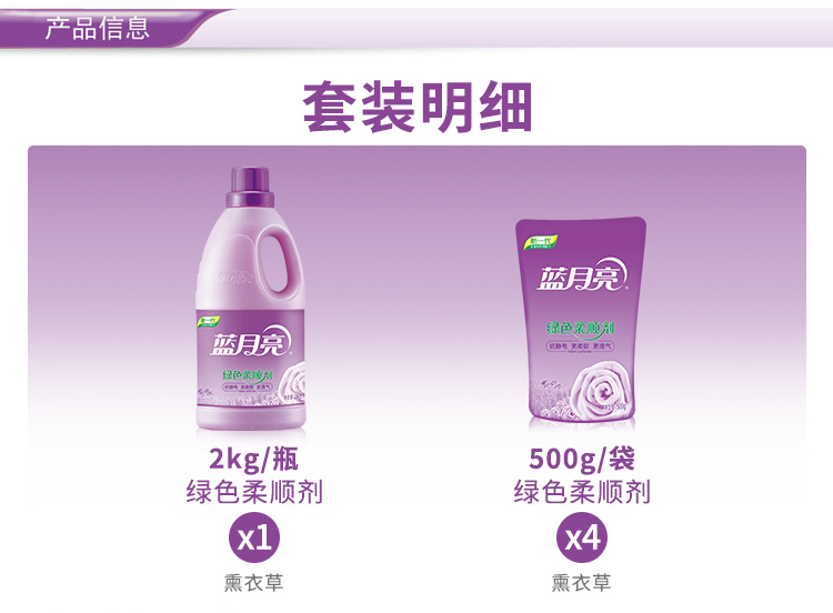 蓝月亮护理剂_2kg*1瓶+500g*4袋 衣物护理剂 柔顺剂8斤瓶装补充袋 柔软透气 留香持久 组合装