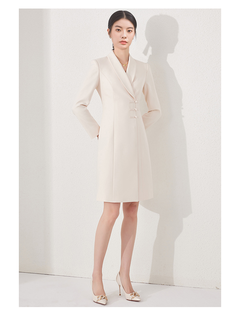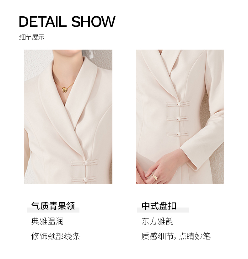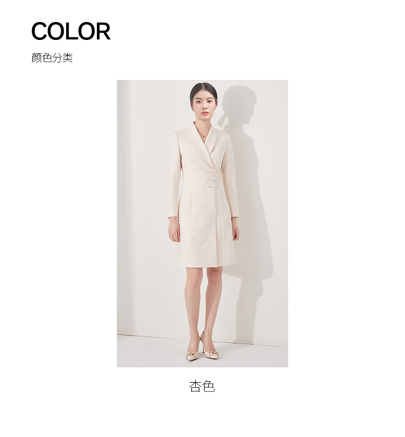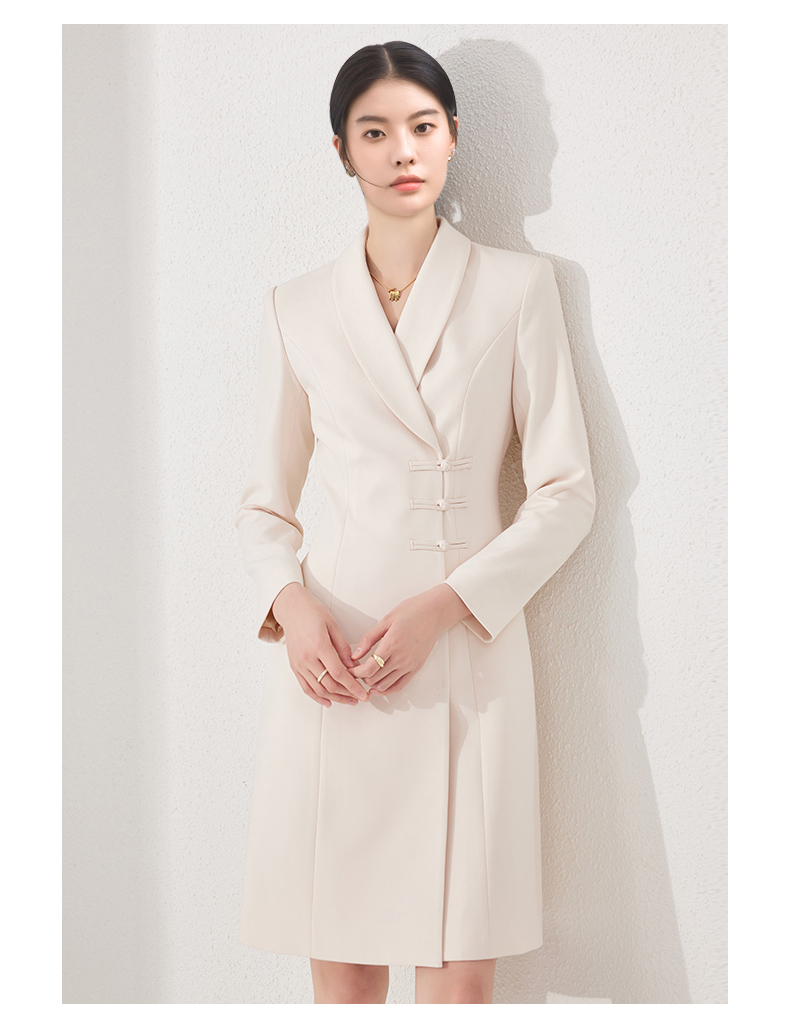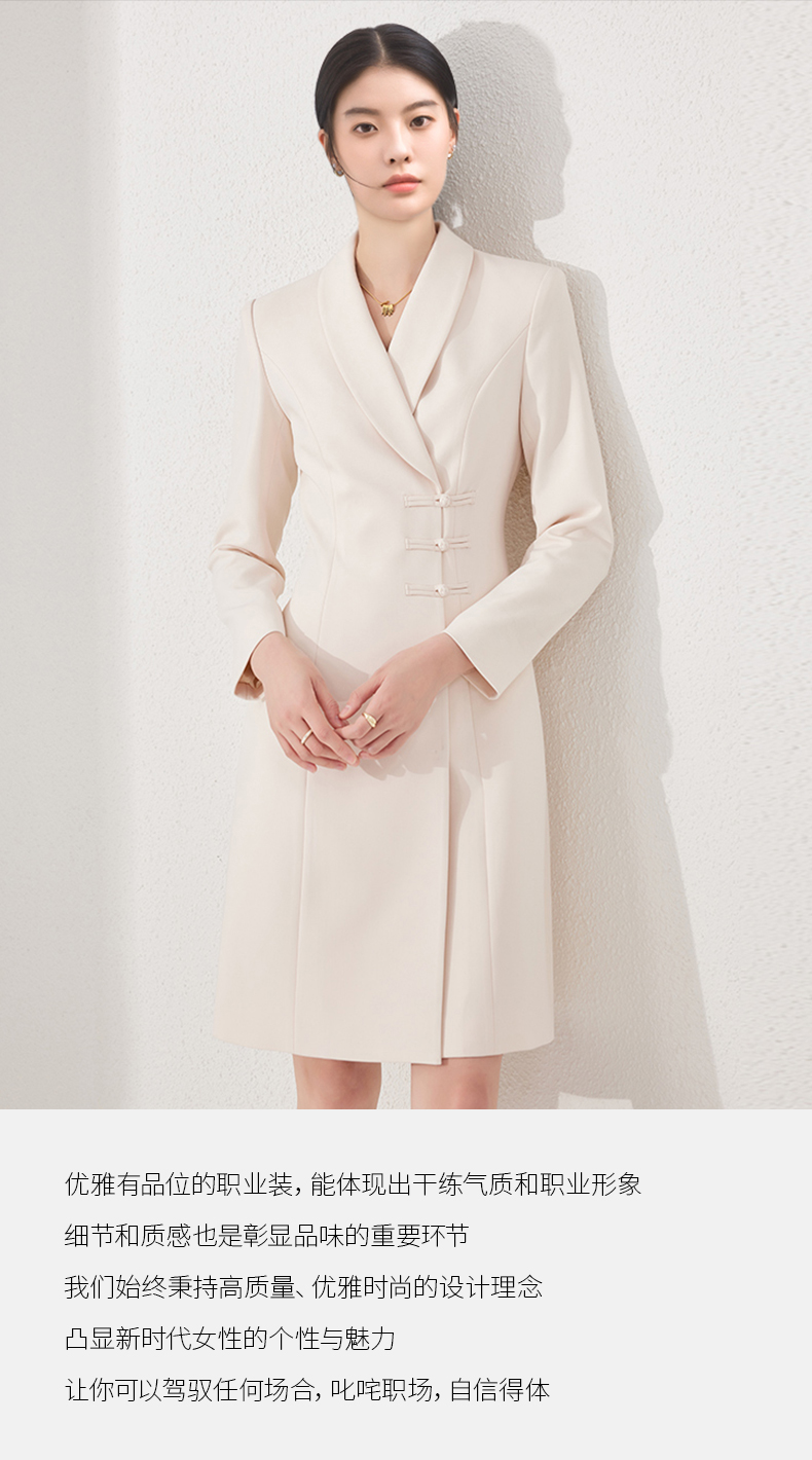IWY/国风连衣裙新中式杏色工作服医美高级感气质主持人修身盘扣ol正装24Q495