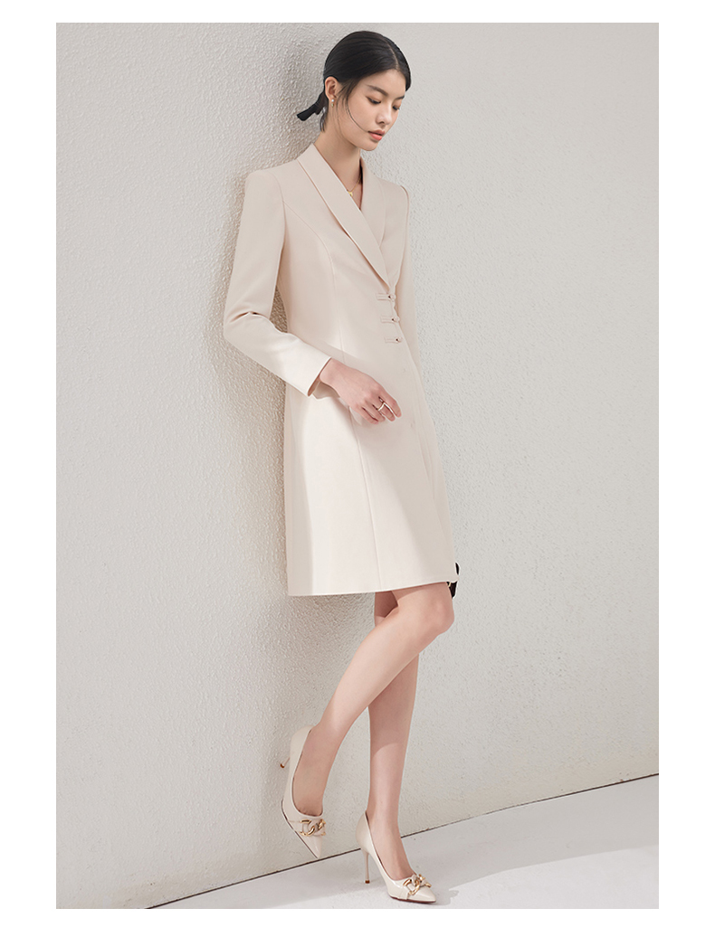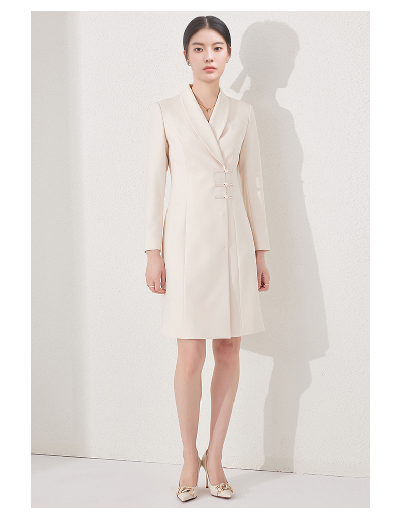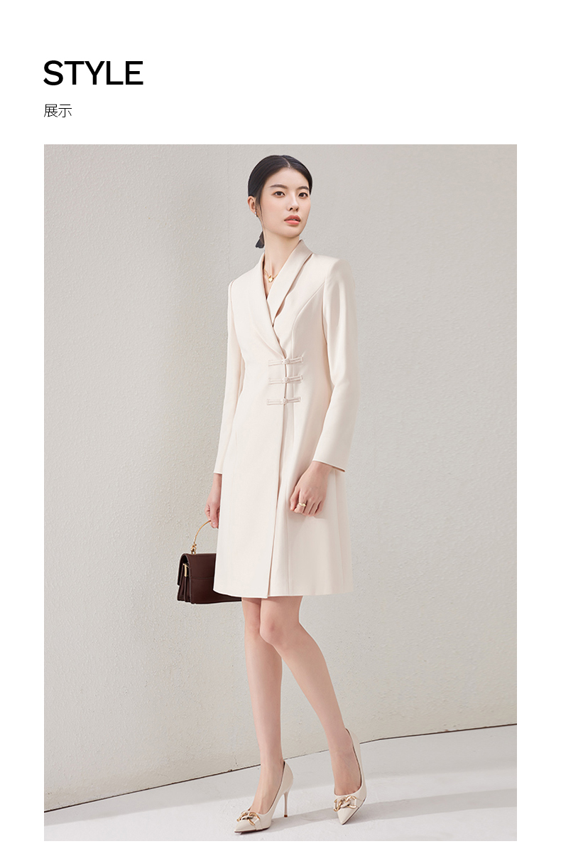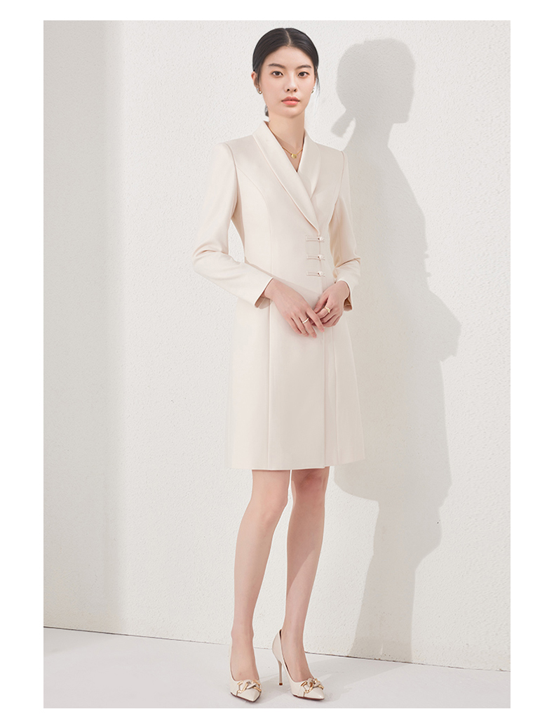 IWY/国风连衣裙新中式杏色工作服医美高级感气质主持人修身盘扣ol正装24Q495