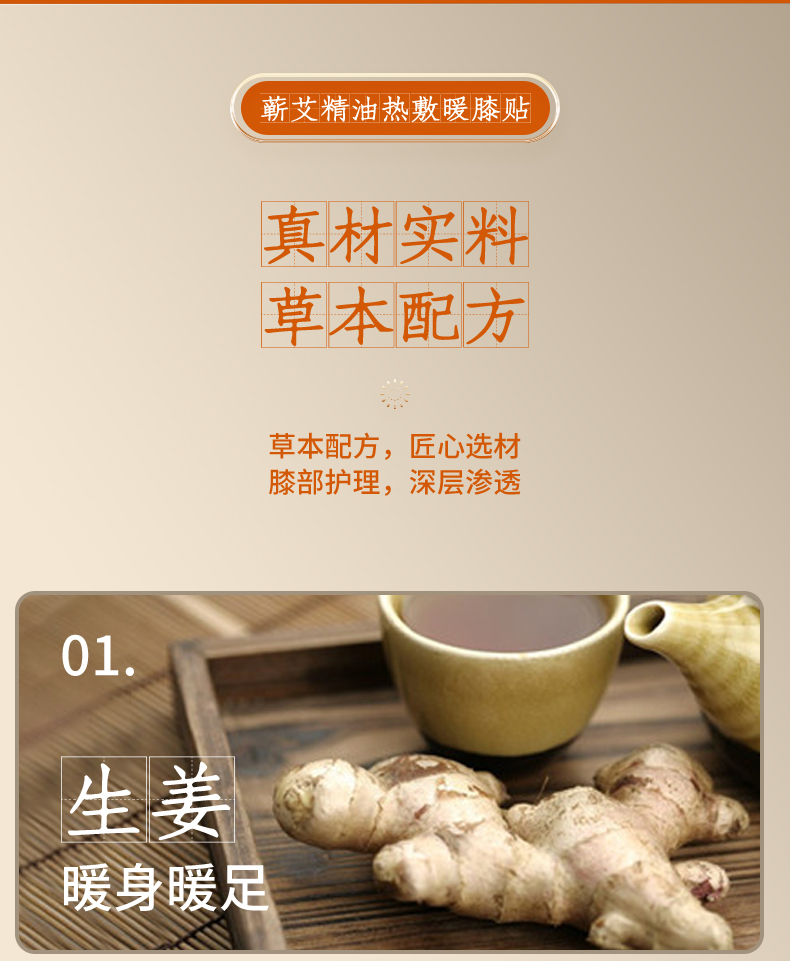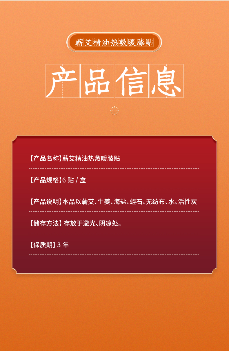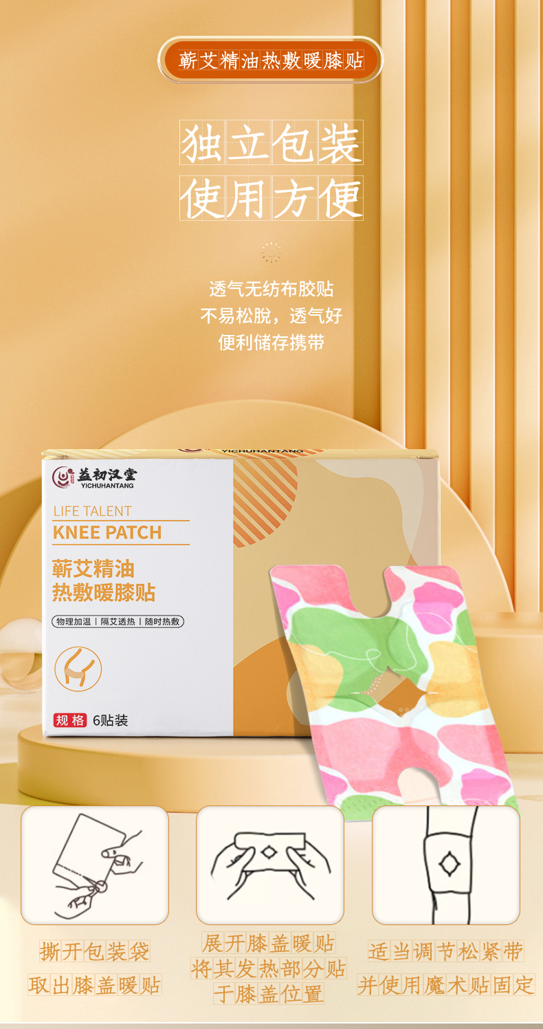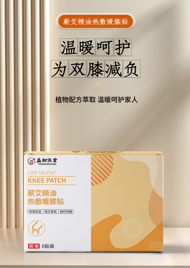 【养膝护膝 四季可用】益初汉堂蕲艾精油热敷暖膝贴 办公久坐冰凉湿冷不适 草本配方 驱寒保暖解压