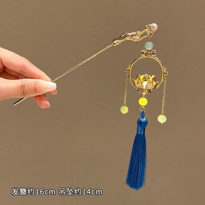 【中式国潮!流苏莲花发光发簪】感受古典与时尚的美妙结合,古风个性汉服步摇高级感簪子复古宫灯
