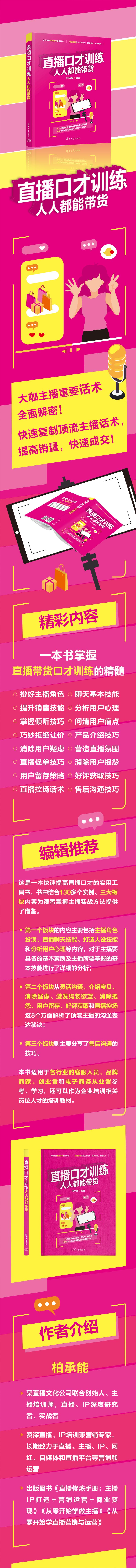 这是一本快速提高直播口才的实用工具书,书中结合130多个实例、三大板块内容为读者掌握主播实战方法提供了借鉴:第一个板块的内容主要包含主播角色扮演、直播聊天技能、打造人设技能和分析用户心理等内容,对主播要具备的基本素质及主播所要掌握的基本技能进行了详细的分析;第二个板块从灵活沟通、介绍宝贝、消除疑虑、激发购物欲望、消除抱怨、用户留存、好评获取和直播控场这8个方面解析了顶流主播的沟通表达秘诀;第三个板块则主要分享了售后沟通的技巧。本书既适合从事各行业的客服人员、品牌商家、创业者和电子商务从业者参考、学习,也可以作为企业相关岗位人才的培训教材。