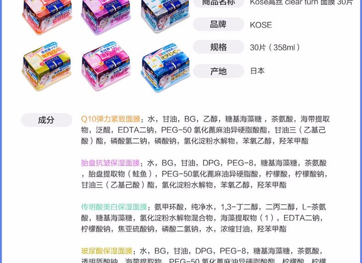 【保税仓】KOSE/高丝 抽取式胎盘透白面膜 30回