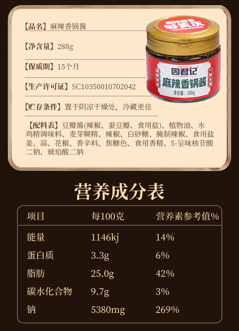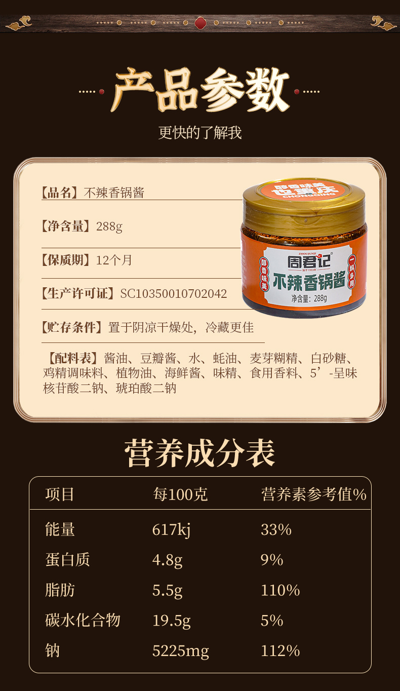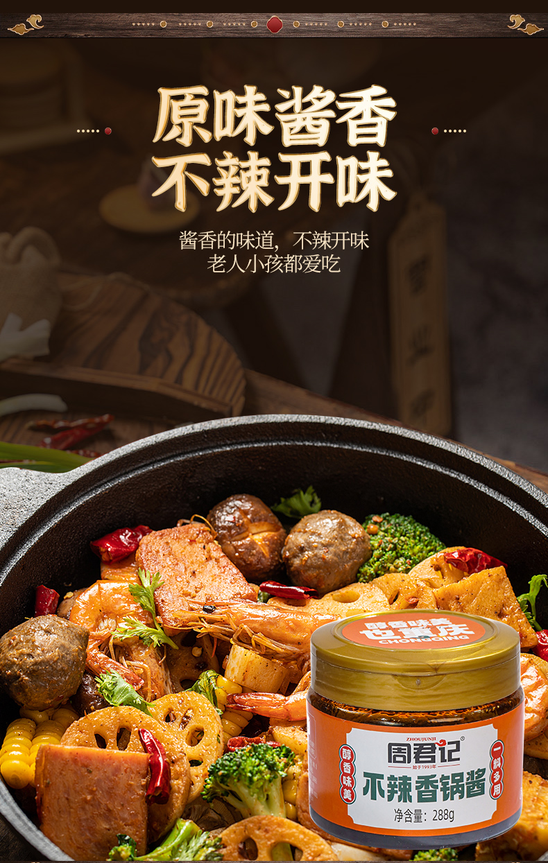 周君记地道川味香锅酱288g香辣香锅小炒酱香辣不辣酱香