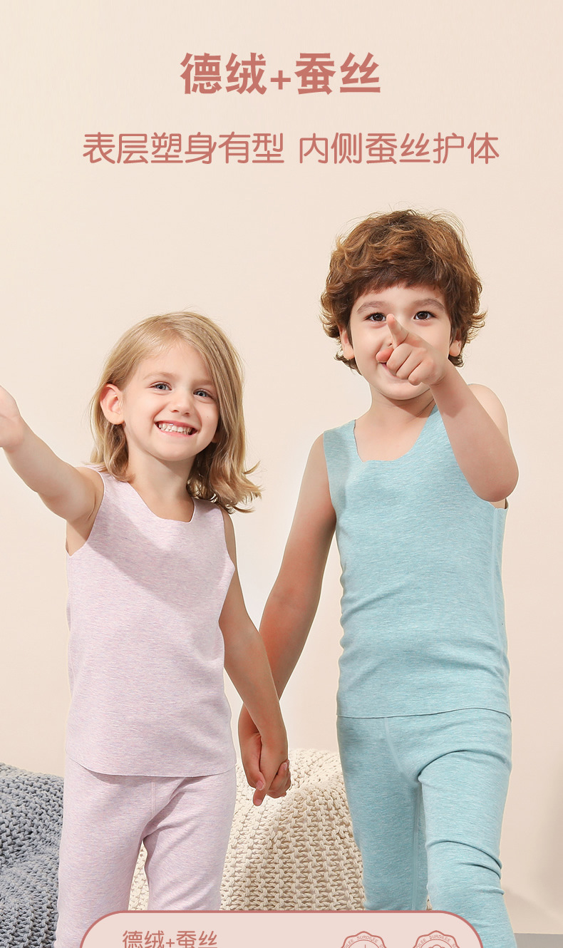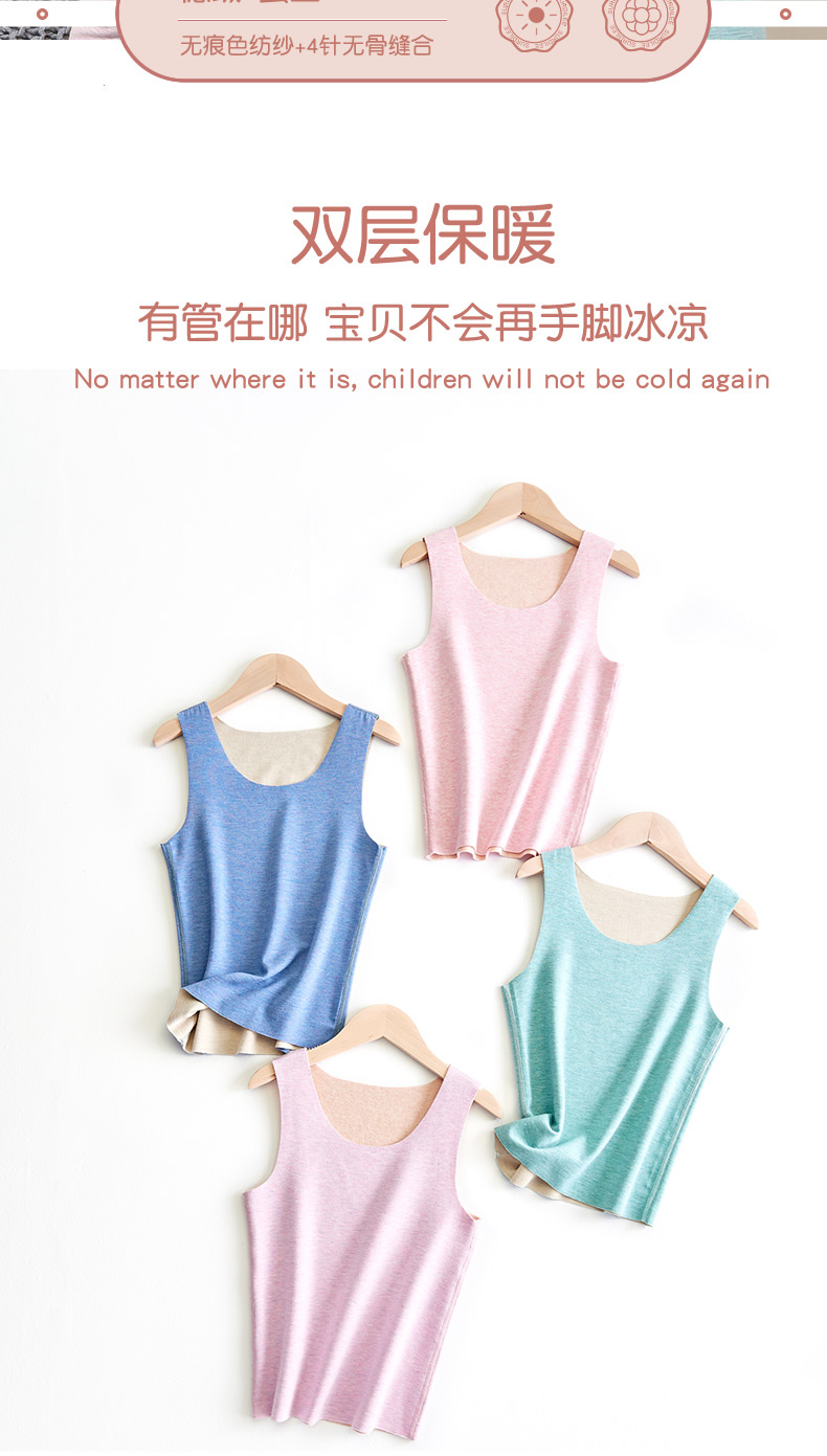 21秋冬儿童德绒保暖内衣无痕蚕丝背心AB双面加绒儿童炫彩背心