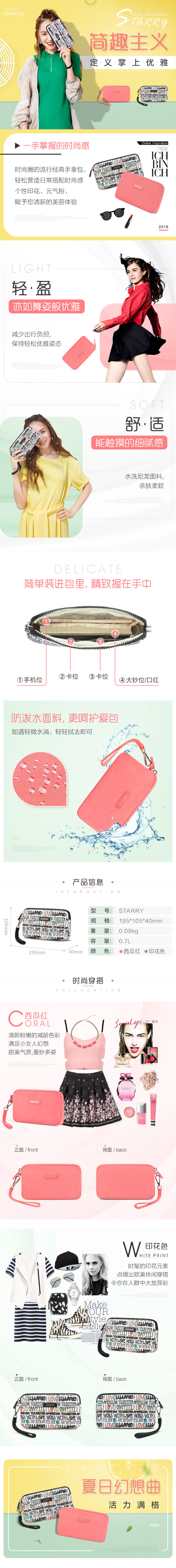 【美旅】手拿包 轻便小巧 随身携带 印花 西瓜红 可拆卸拎带 TH1*001&101