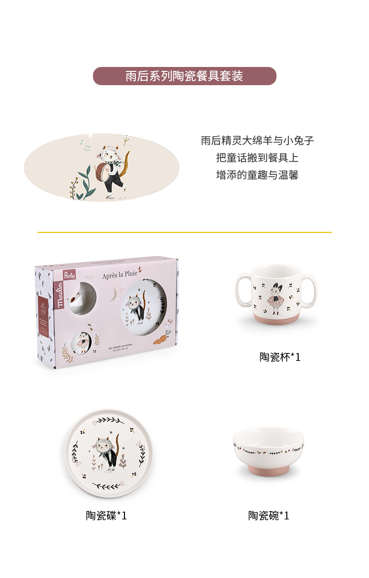 Moulin Roty 雨后 陶瓷餐具套装 适合3岁+ 精美餐具 雨后系列 法国品牌-715230