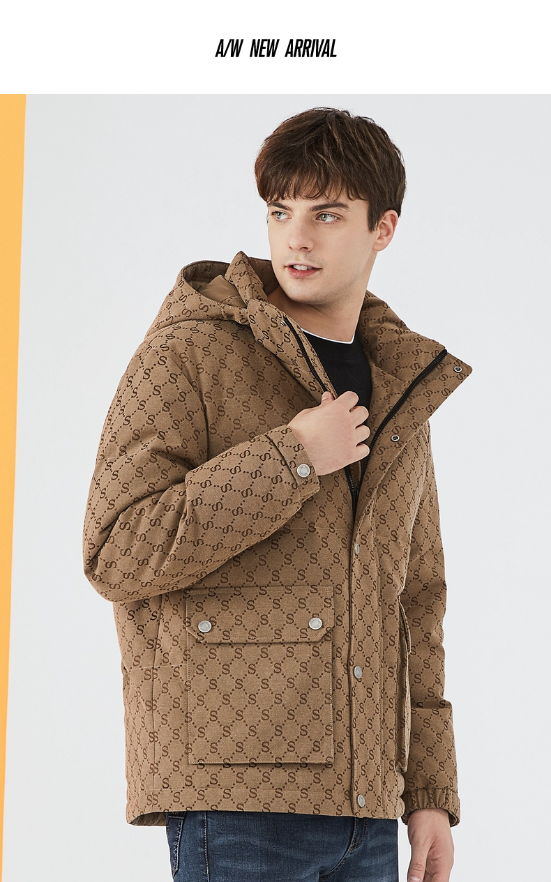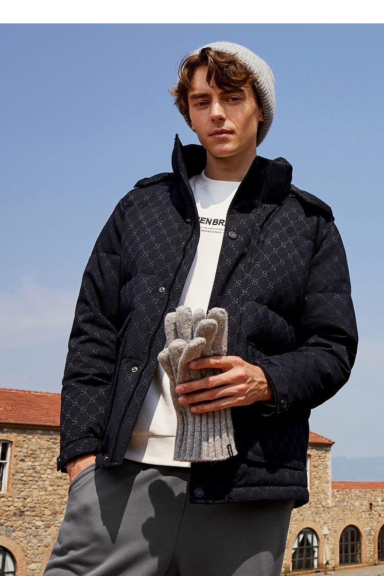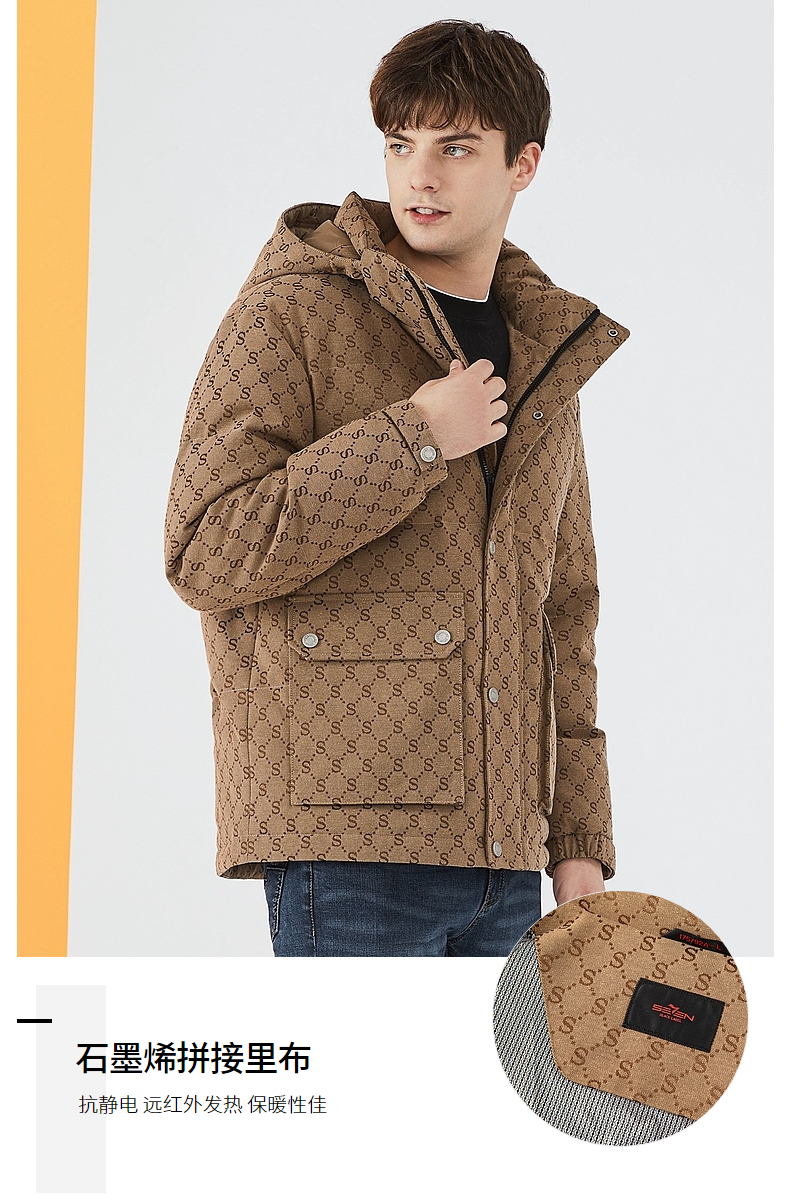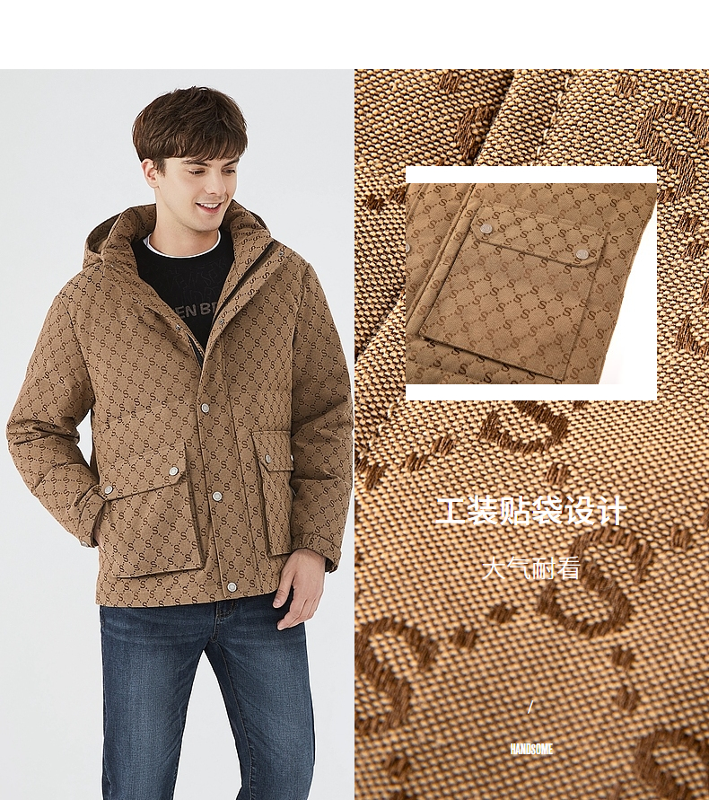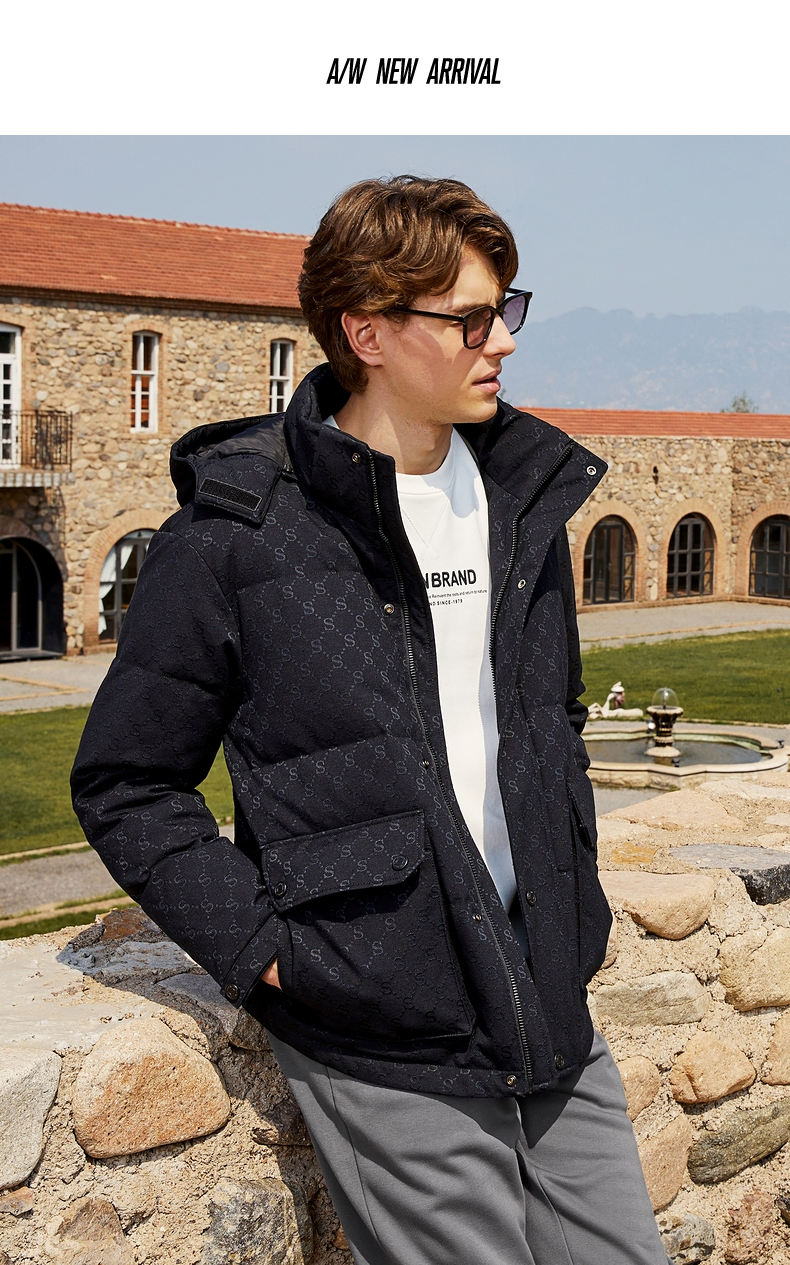 【90白鸭绒】柒牌羽绒服男冬季时尚字母提花可拆卸帽厚款羽绒外套 125E70030