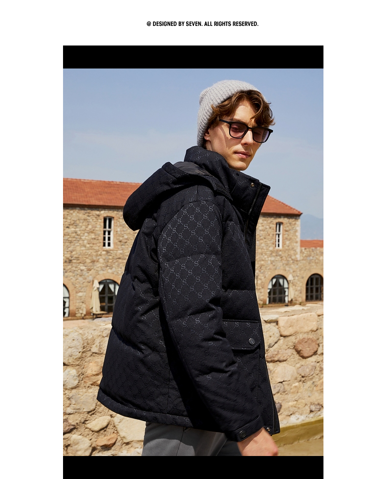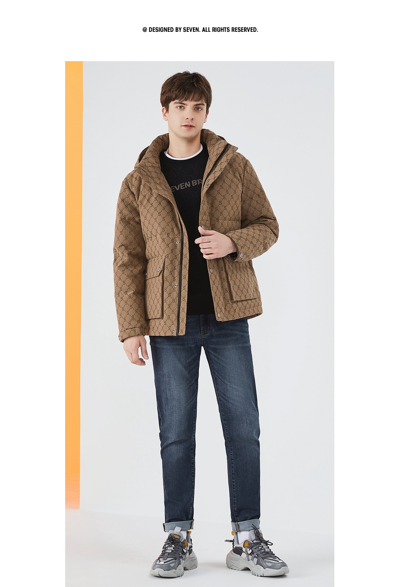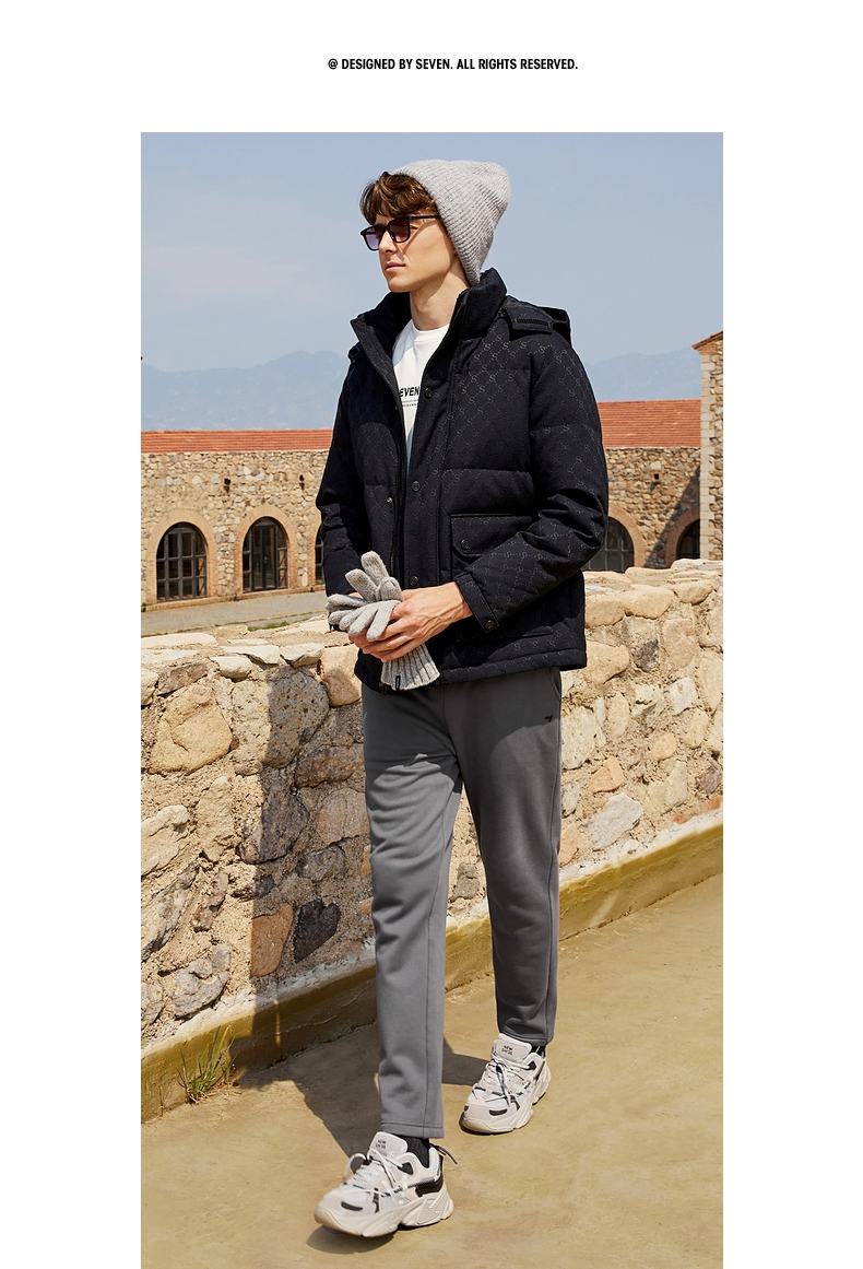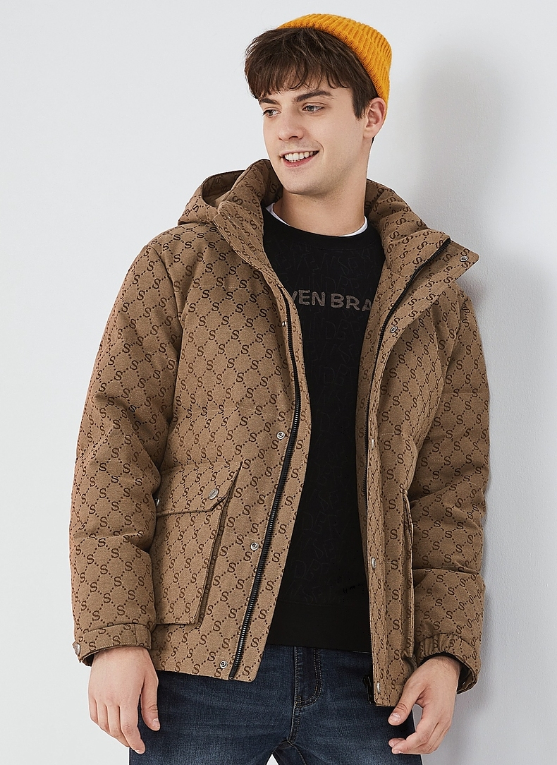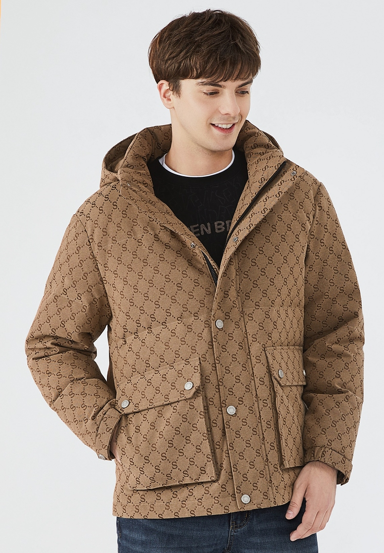 【90白鸭绒】柒牌羽绒服男冬季时尚字母提花可拆卸帽厚款羽绒外套 125E70030