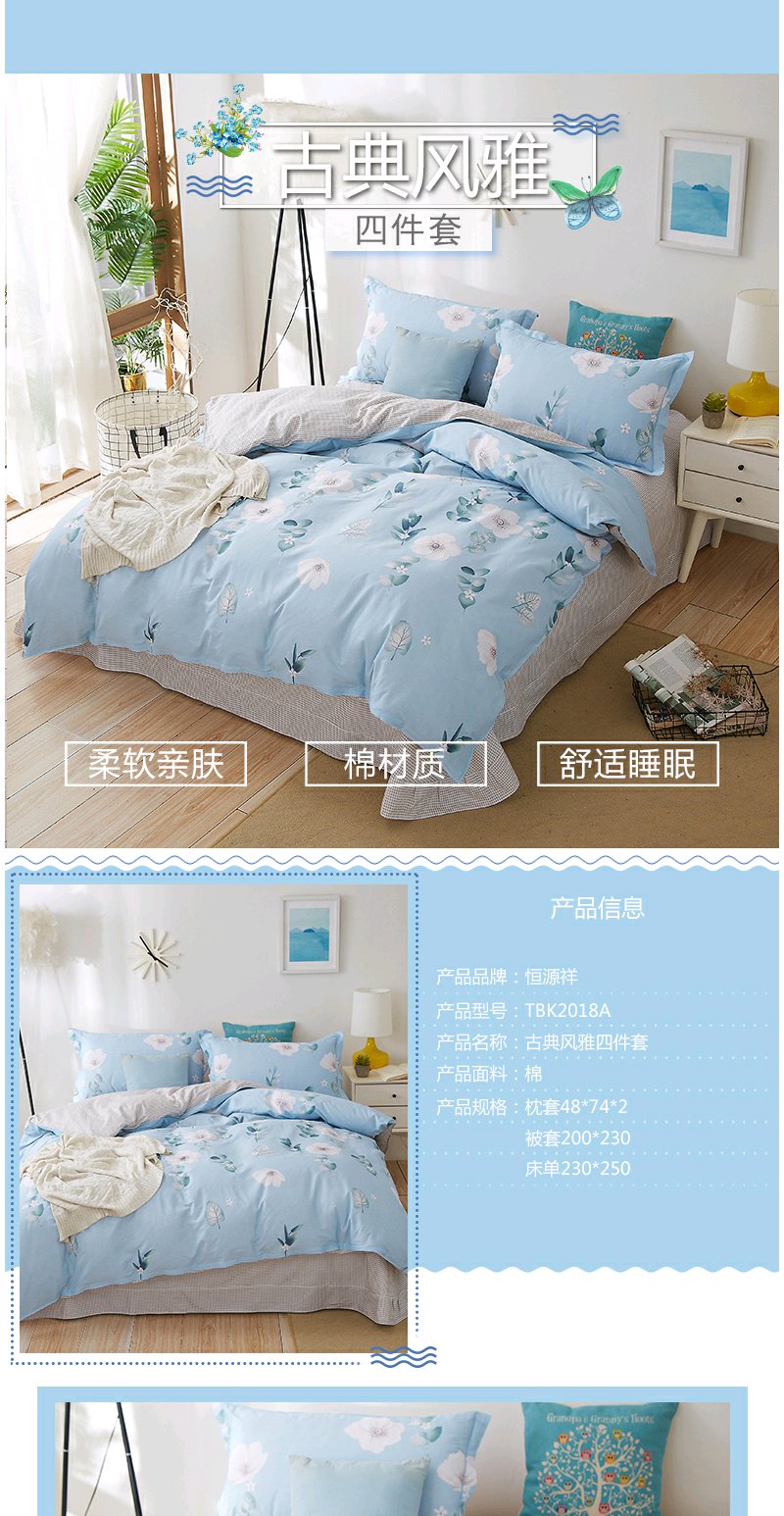 恒源祥TBK2018A古典风雅四件套2米100%棉