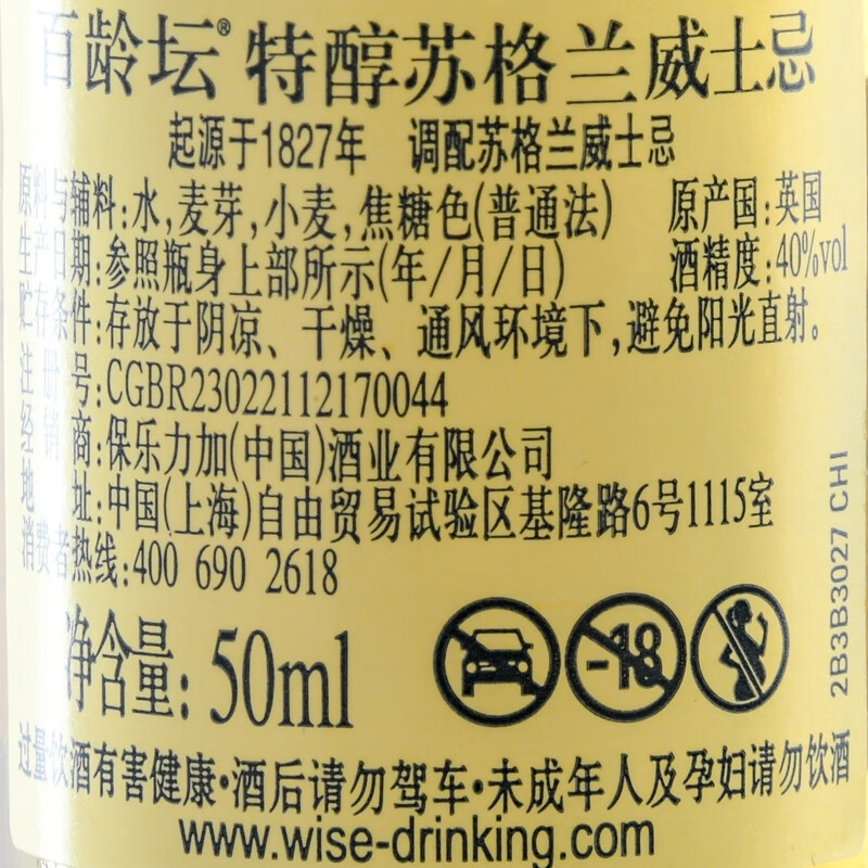 百龄坛特醇苏格兰威士忌_40%vol 50ml