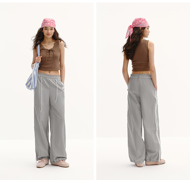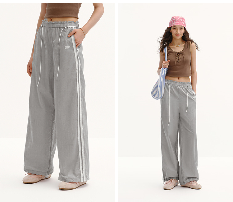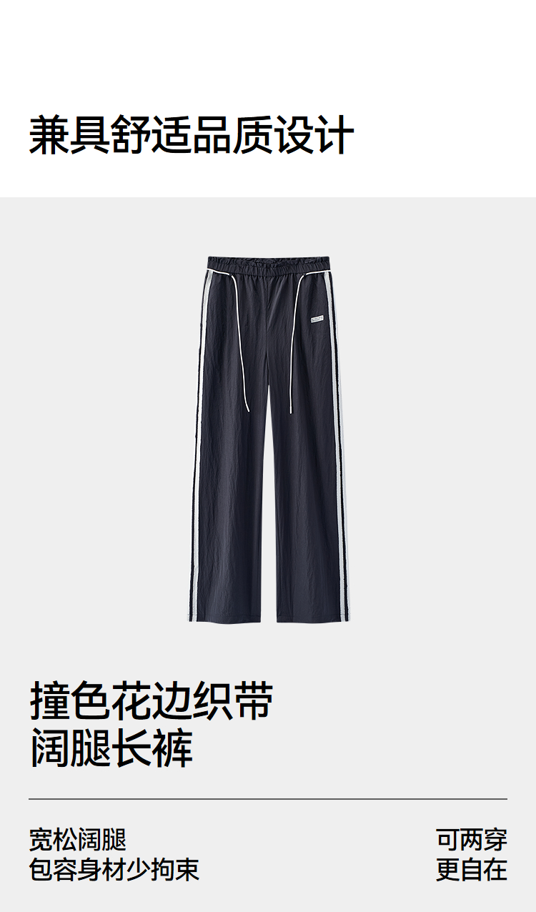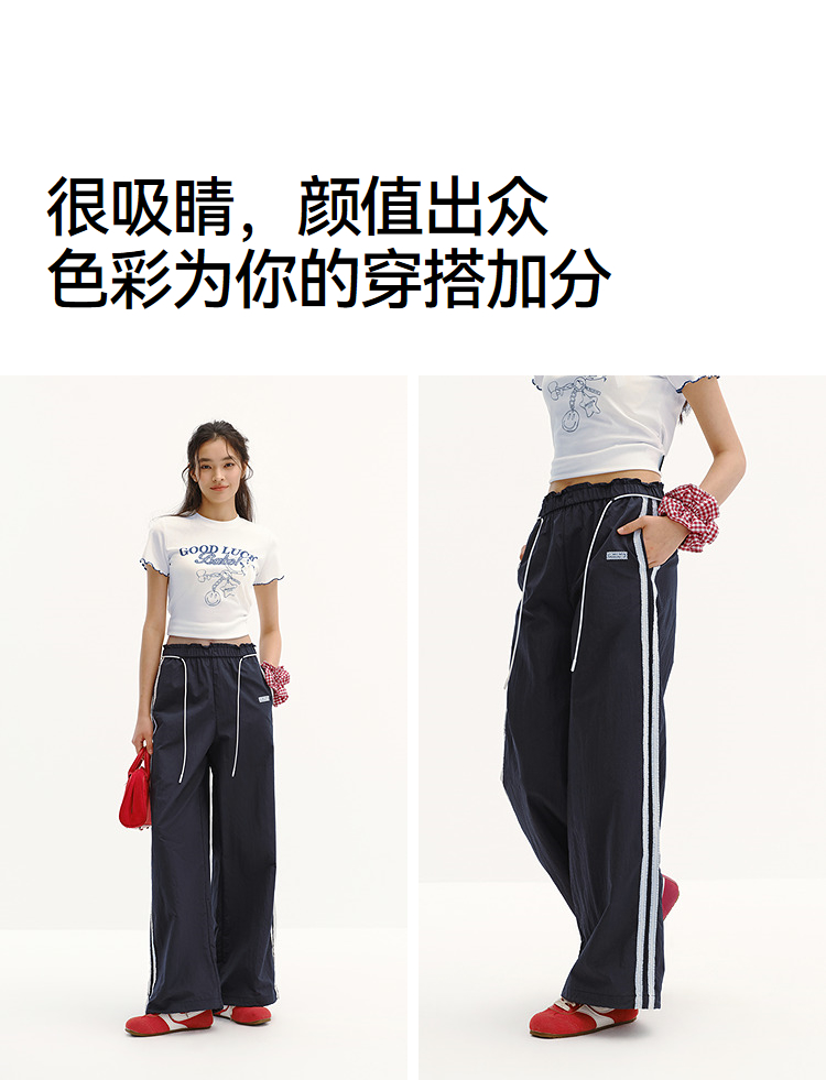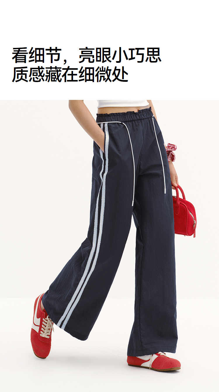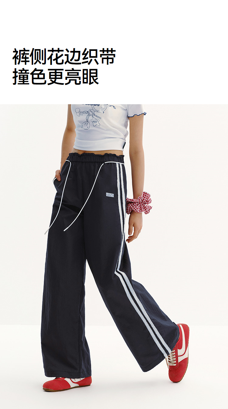 商场同款|森马休闲裤女夏季撞色长裤2026新款松弛感显腿长阔腿裤
