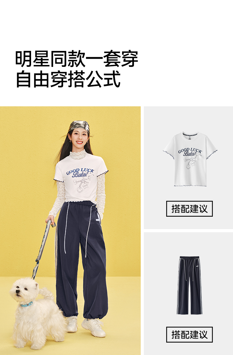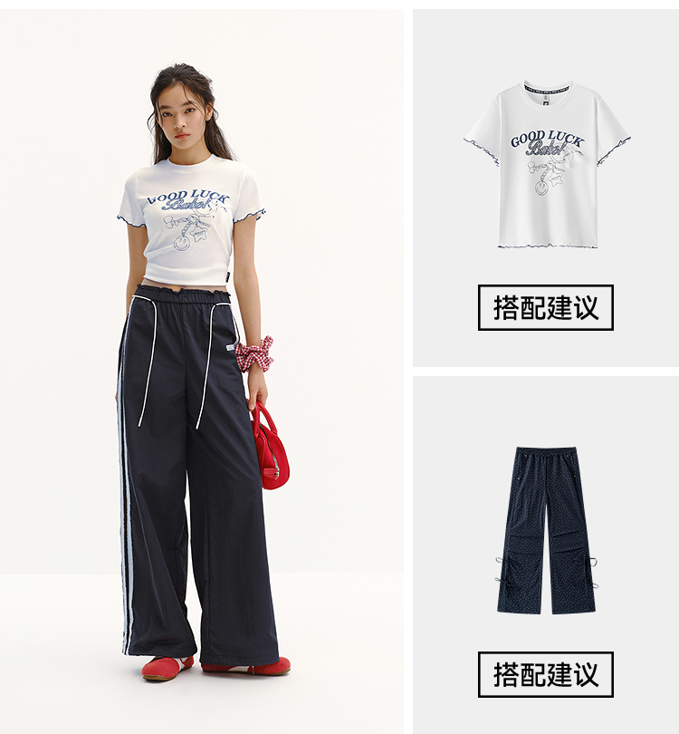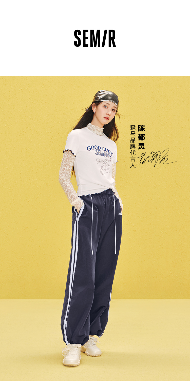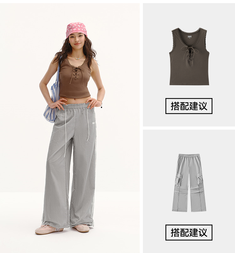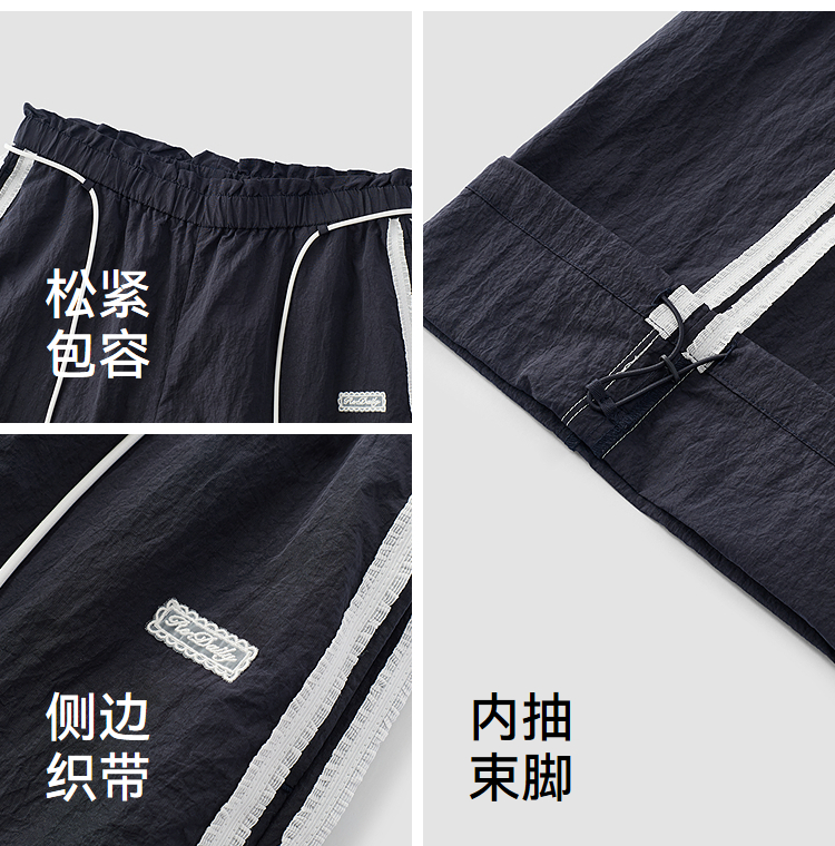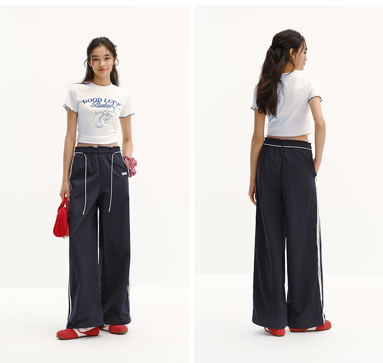 商场同款|森马休闲裤女夏季撞色长裤2026新款松弛感显腿长阔腿裤