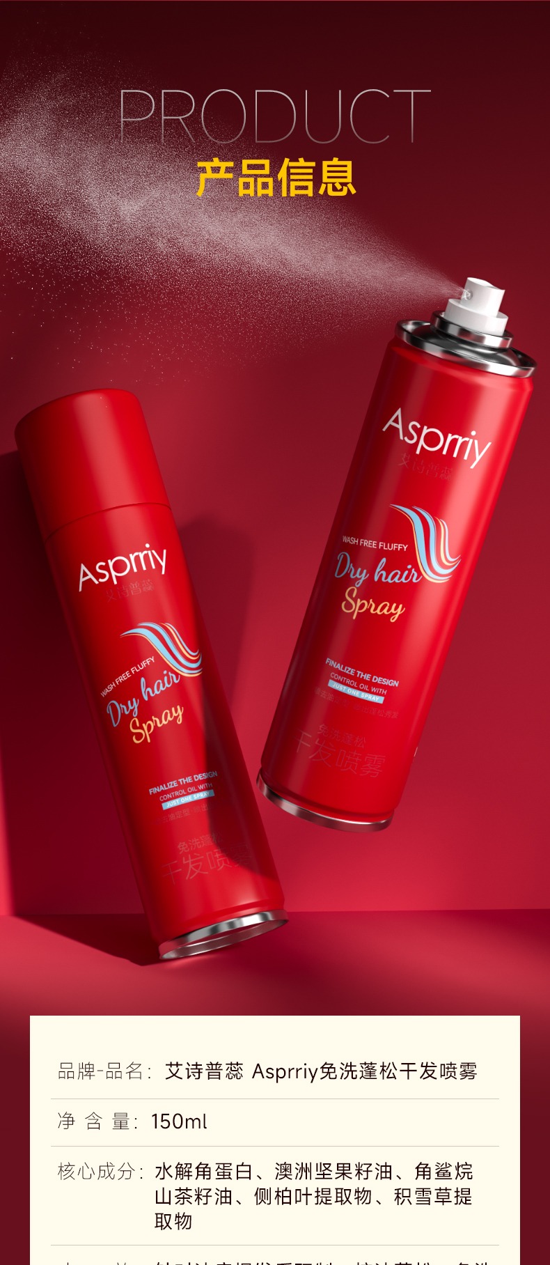 平价优选:清爽,国货蓬松爽发便携喷雾150ml/1瓶*3瓶艾诗普蕊