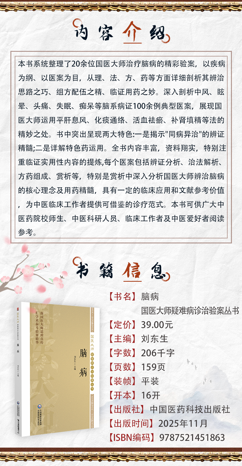 脑病 国医大师疑难病诊治验案丛书 刘东生 供广大中医药院校师生 中医科研人员 临床工作者及中医爱好者阅读参考中国医药科技出版社