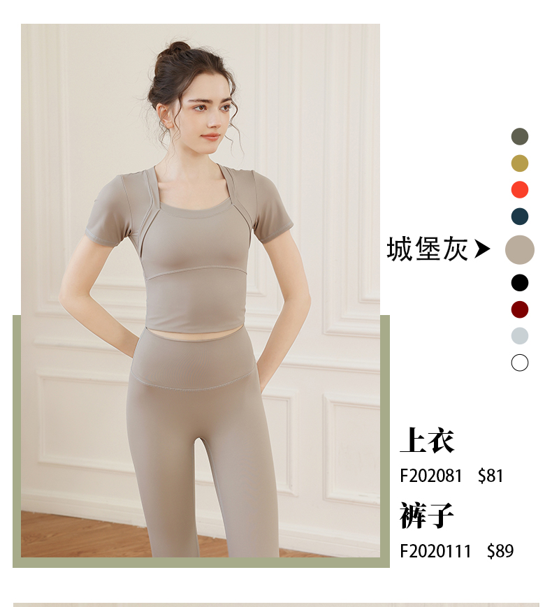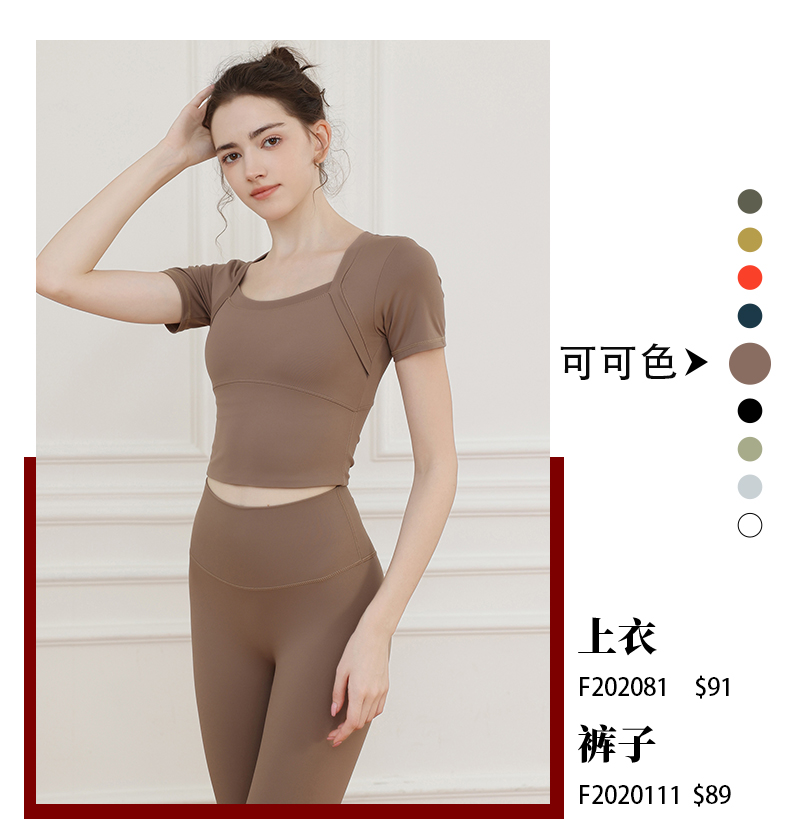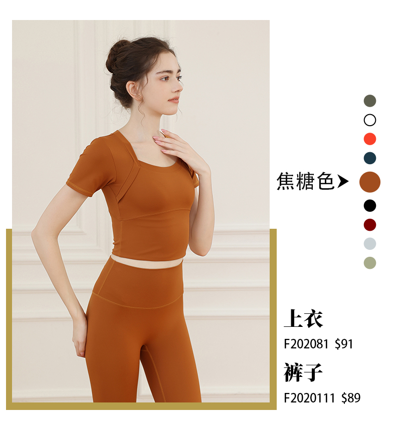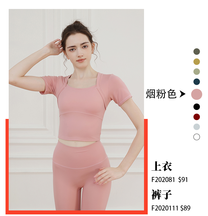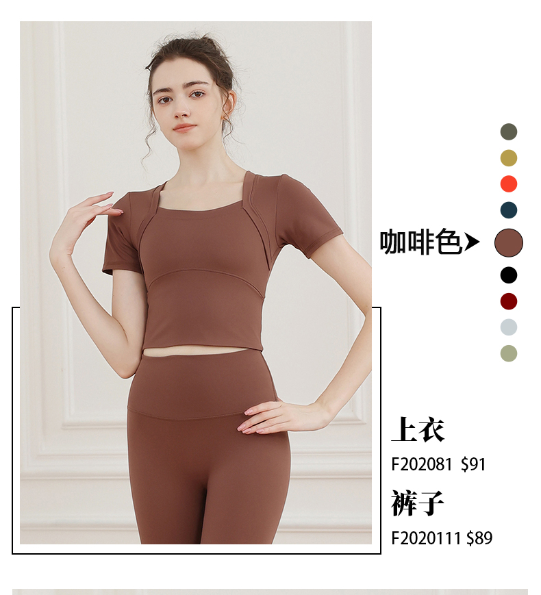 【拼团福利】F202081(双磨面料)梵蒂欧新款瑜伽短袖(含胸垫)3日内发货