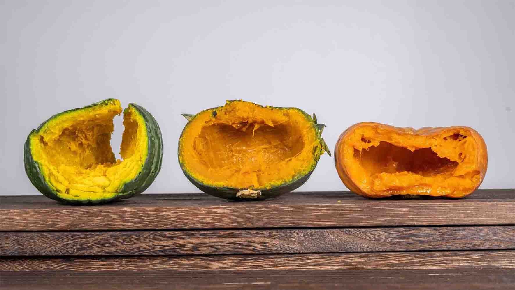 ①第一阶段:叁色栗栗南瓜刚采摘时,墨绿色,高粉低甜,统一在恒温仓糖化将近一个月才适宜食用;