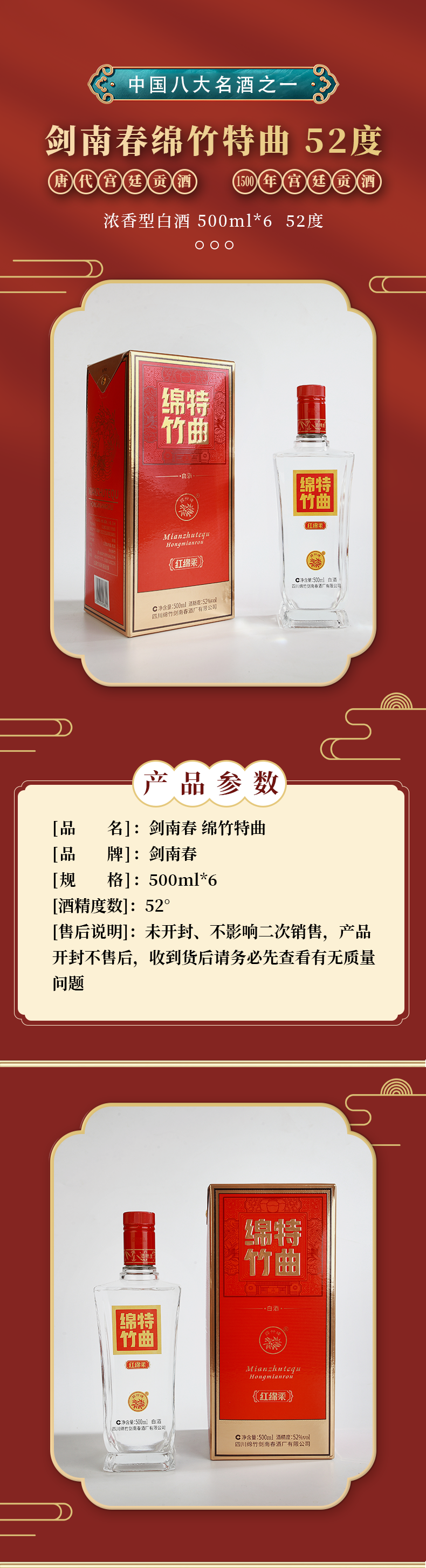 热卖中!!剑南春 绵竹特曲 52°浓香型白酒,500ml/瓶