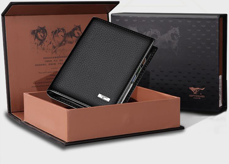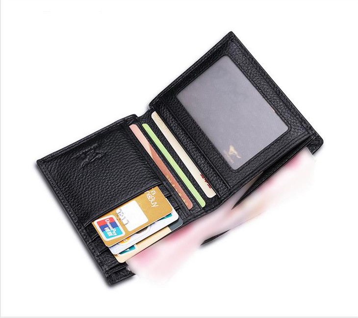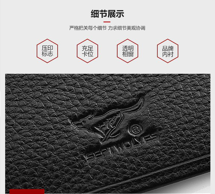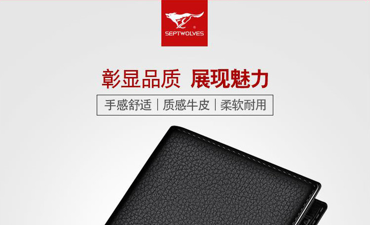 七匹狼 男士钱包短款 商务休闲两折竖款牛皮夹多功能卡包 3A1313112-01黑色