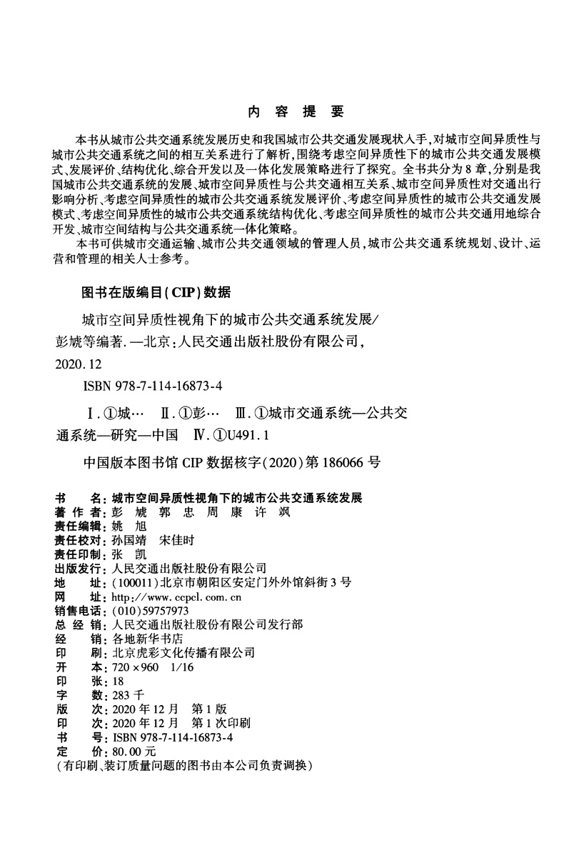 书名:城市空间异质性视角下的城市公共交通系统发展
