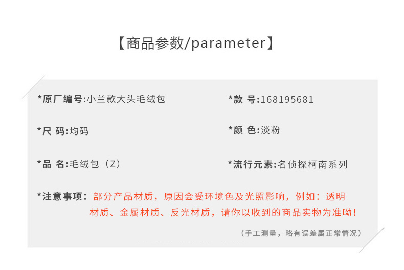 萌趣可爱小兰款大头毛绒包-纪念日百货门店同款168195681