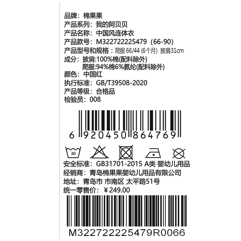 | 肩至前裆 | 38 | 42.5 | 47 | 51.5 |