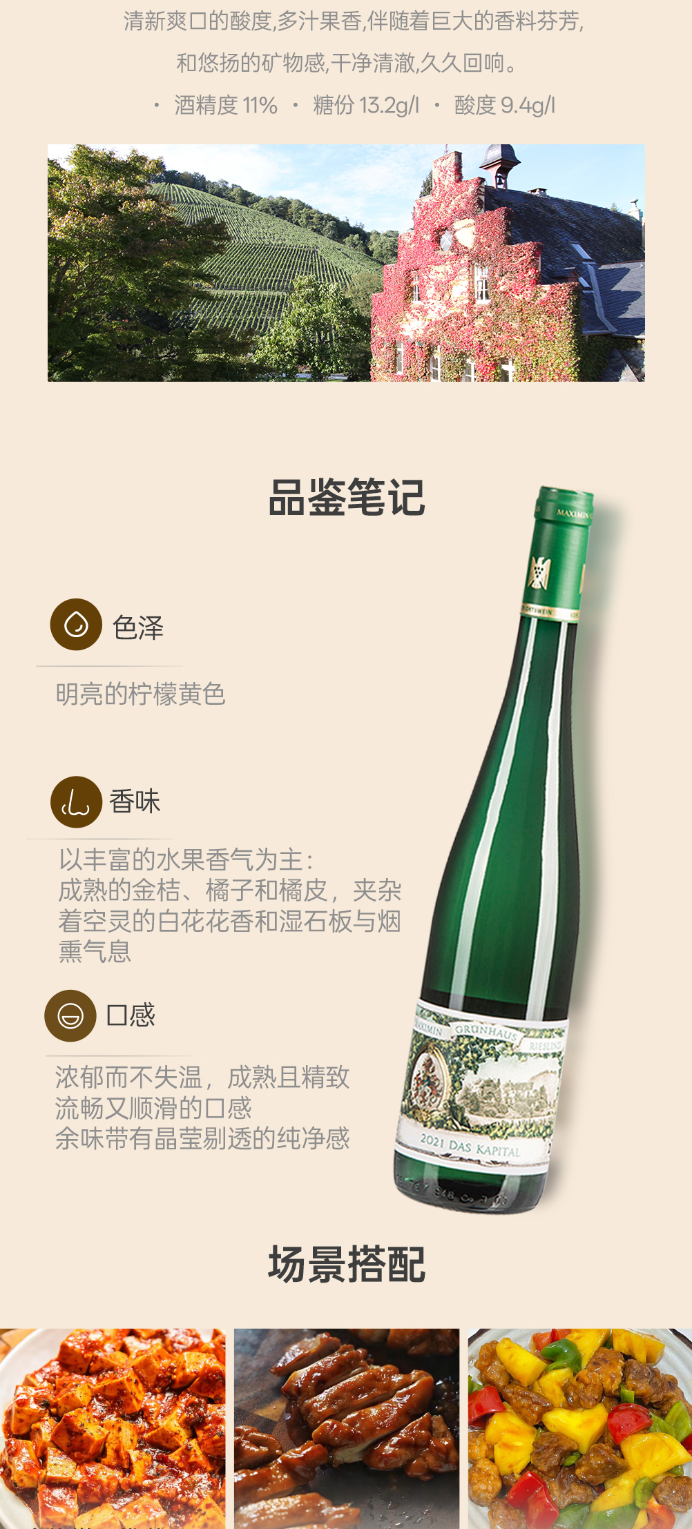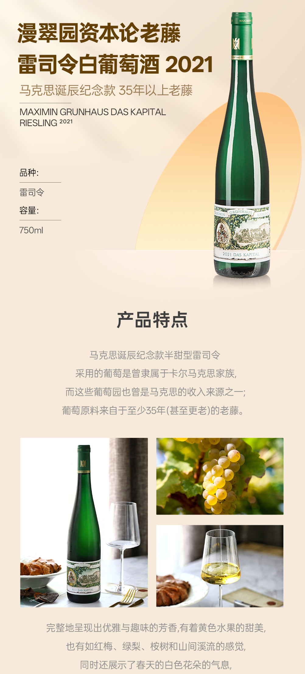 漫翠园资本论老藤雷司令白葡萄酒2021 半甜型 11%vol 750ml