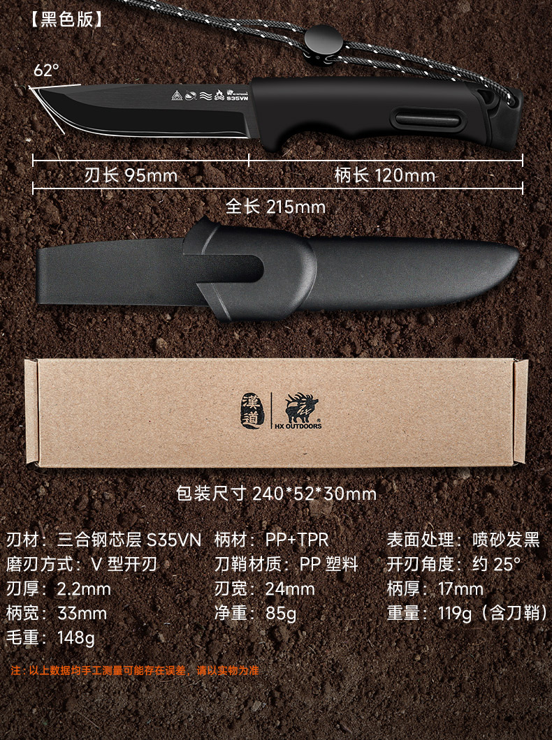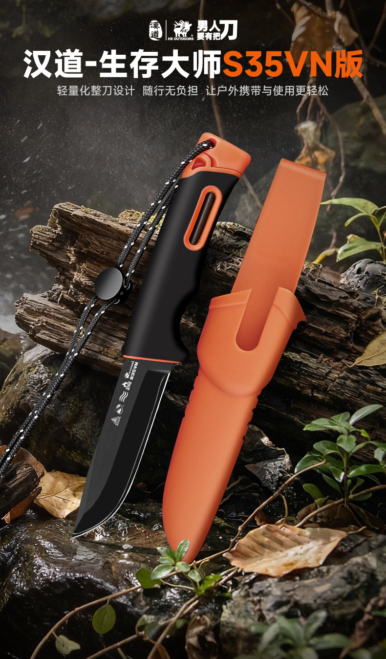 汉道生存大师S35VN钢户外生存刀求生刀野外直刀多功能小刀