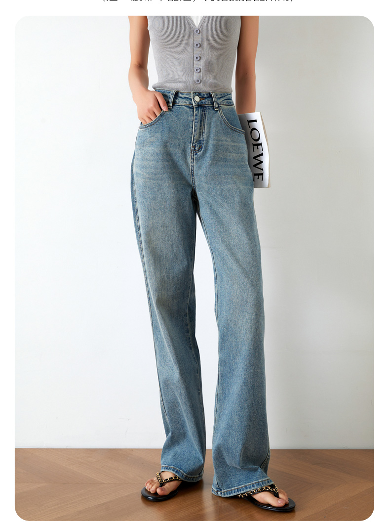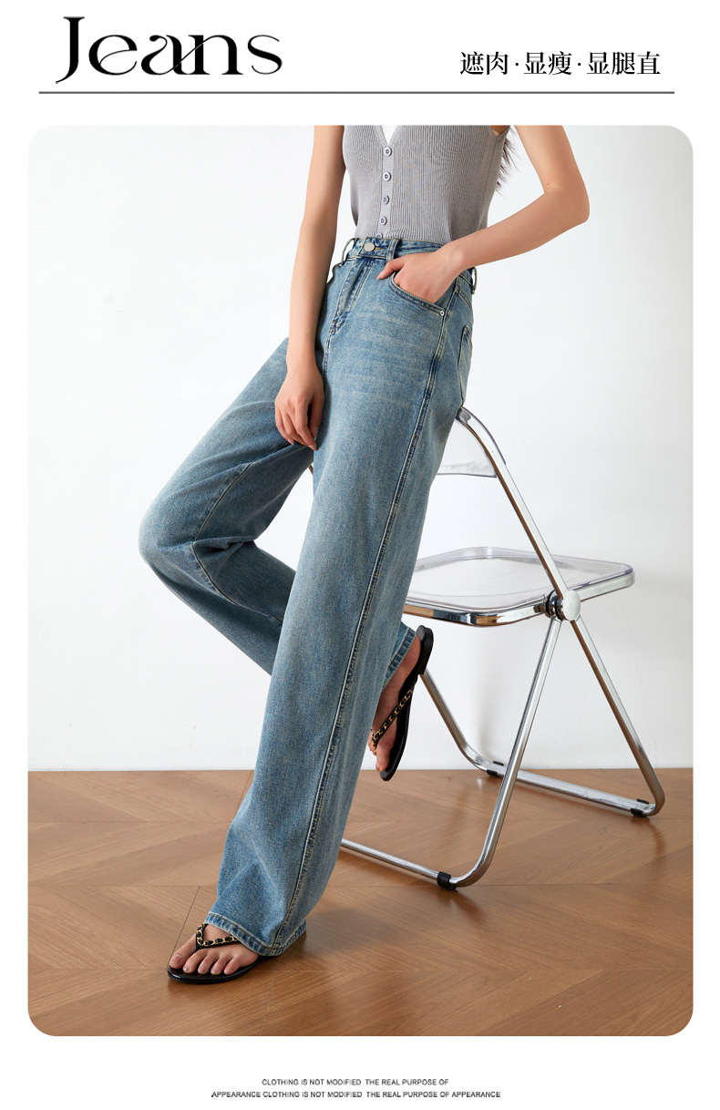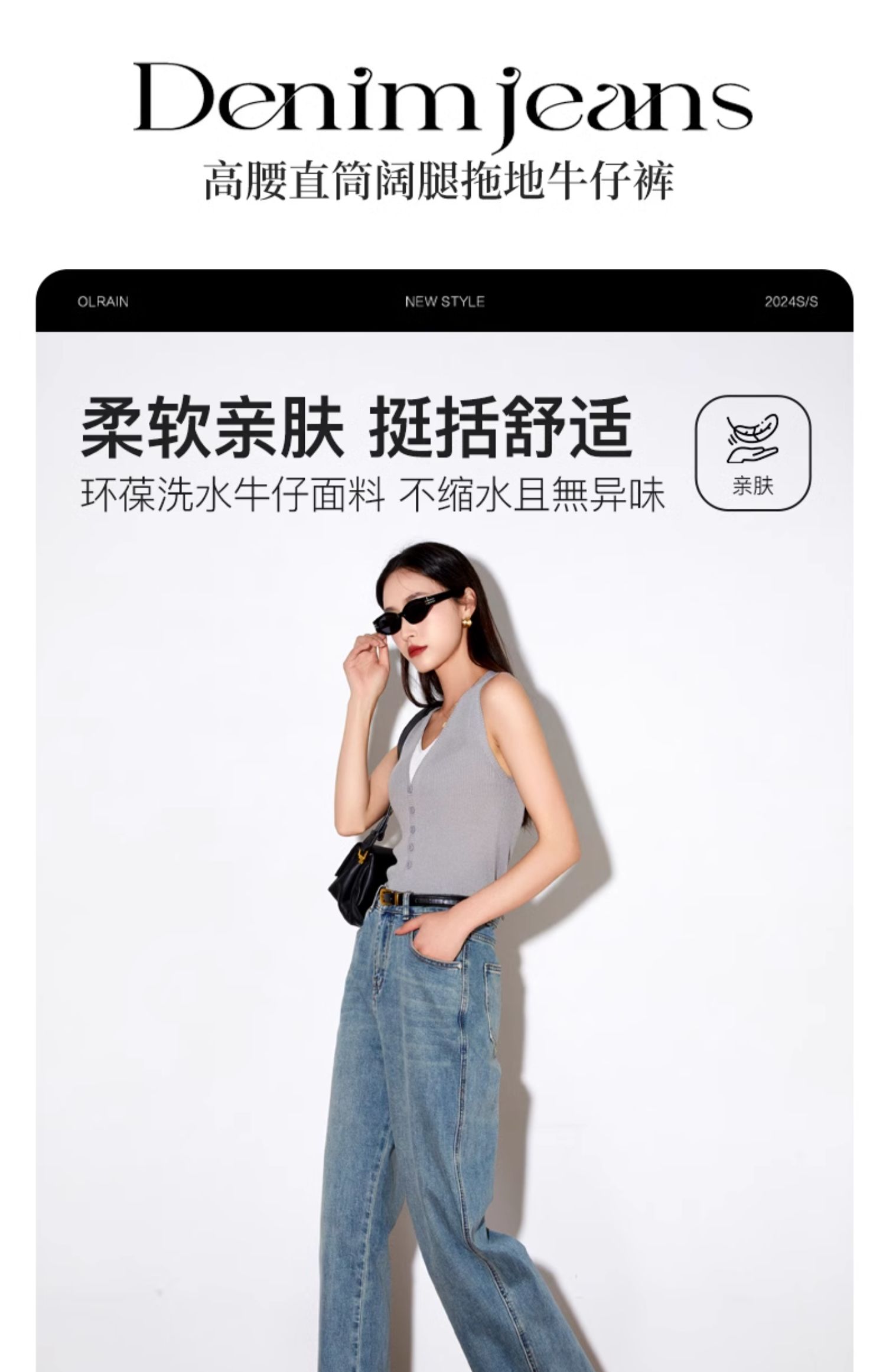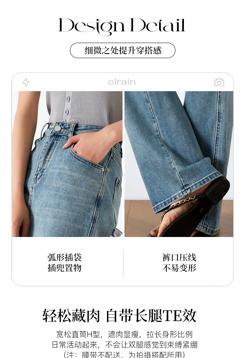 OLrain欧芮儿高腰牛仔裤女夏季2024年新款时尚直筒阔腿拖地裤